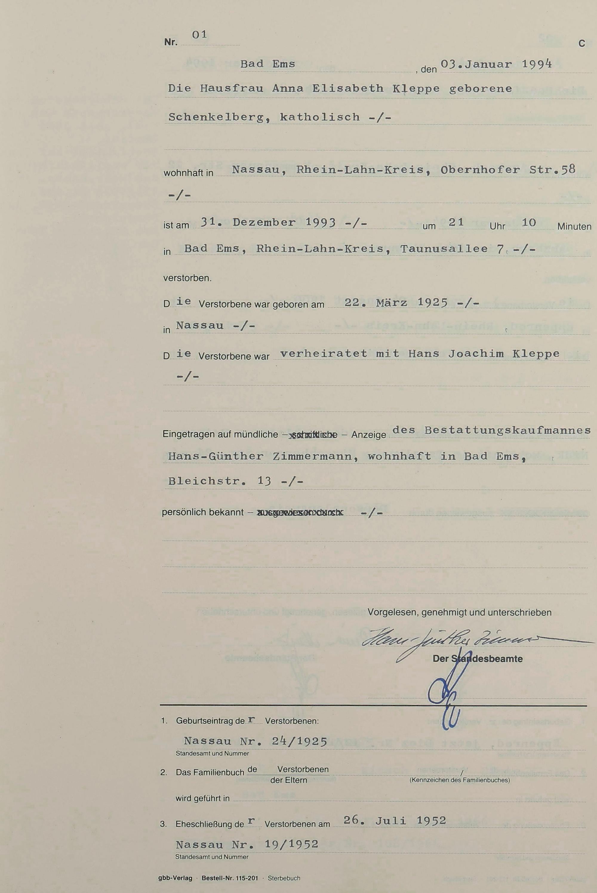 Sterberegister 1994