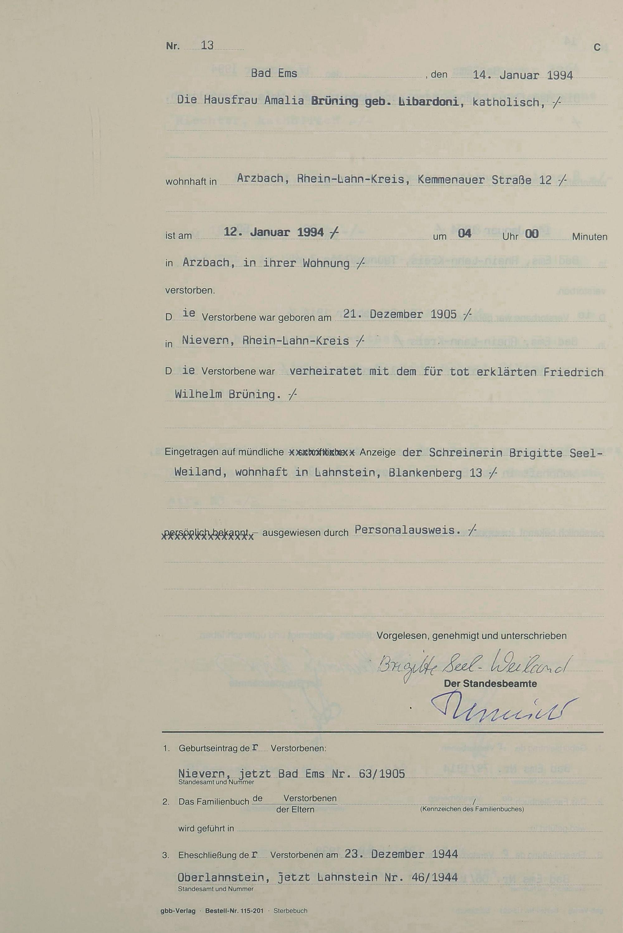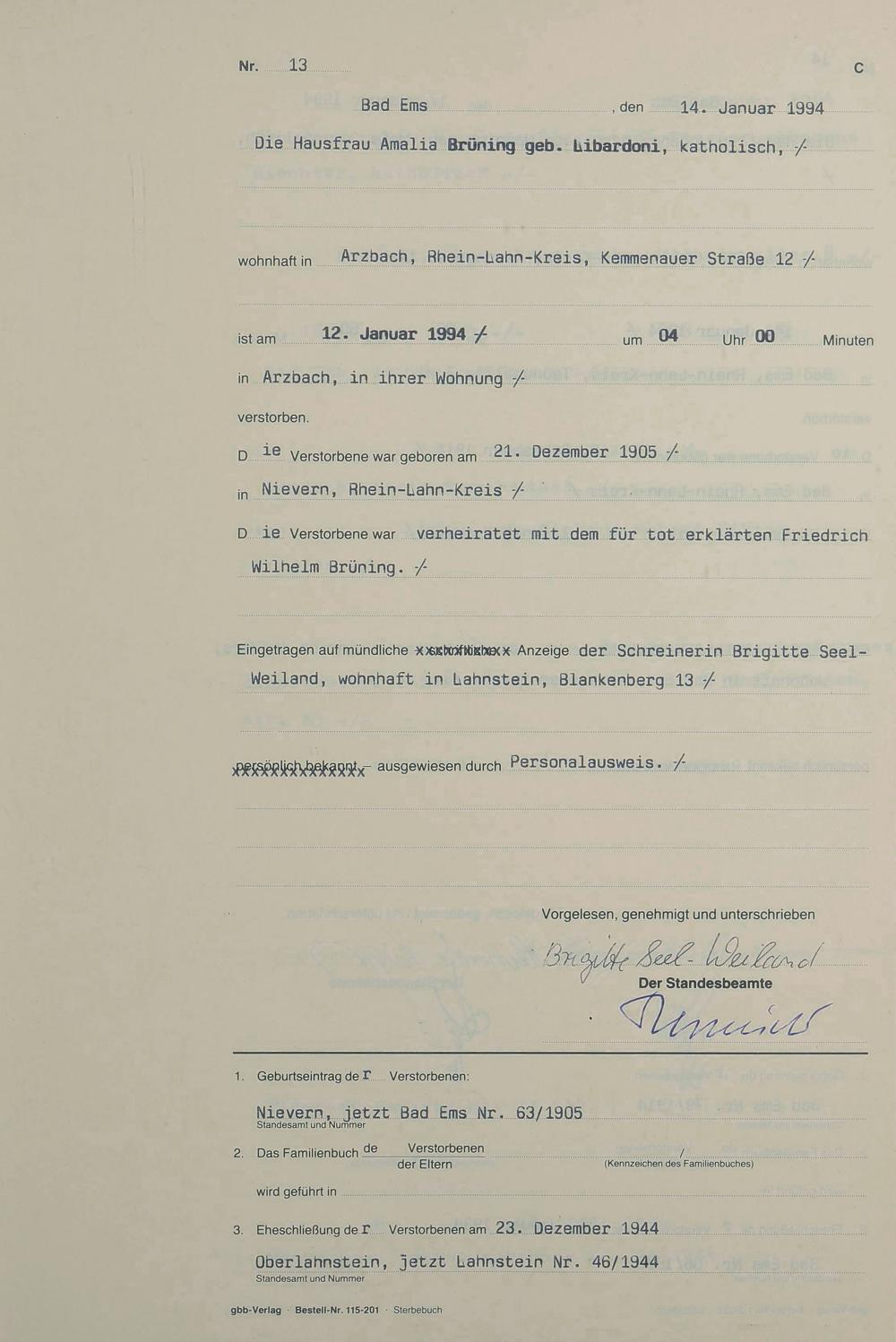 1321: Sterberegister 1994
