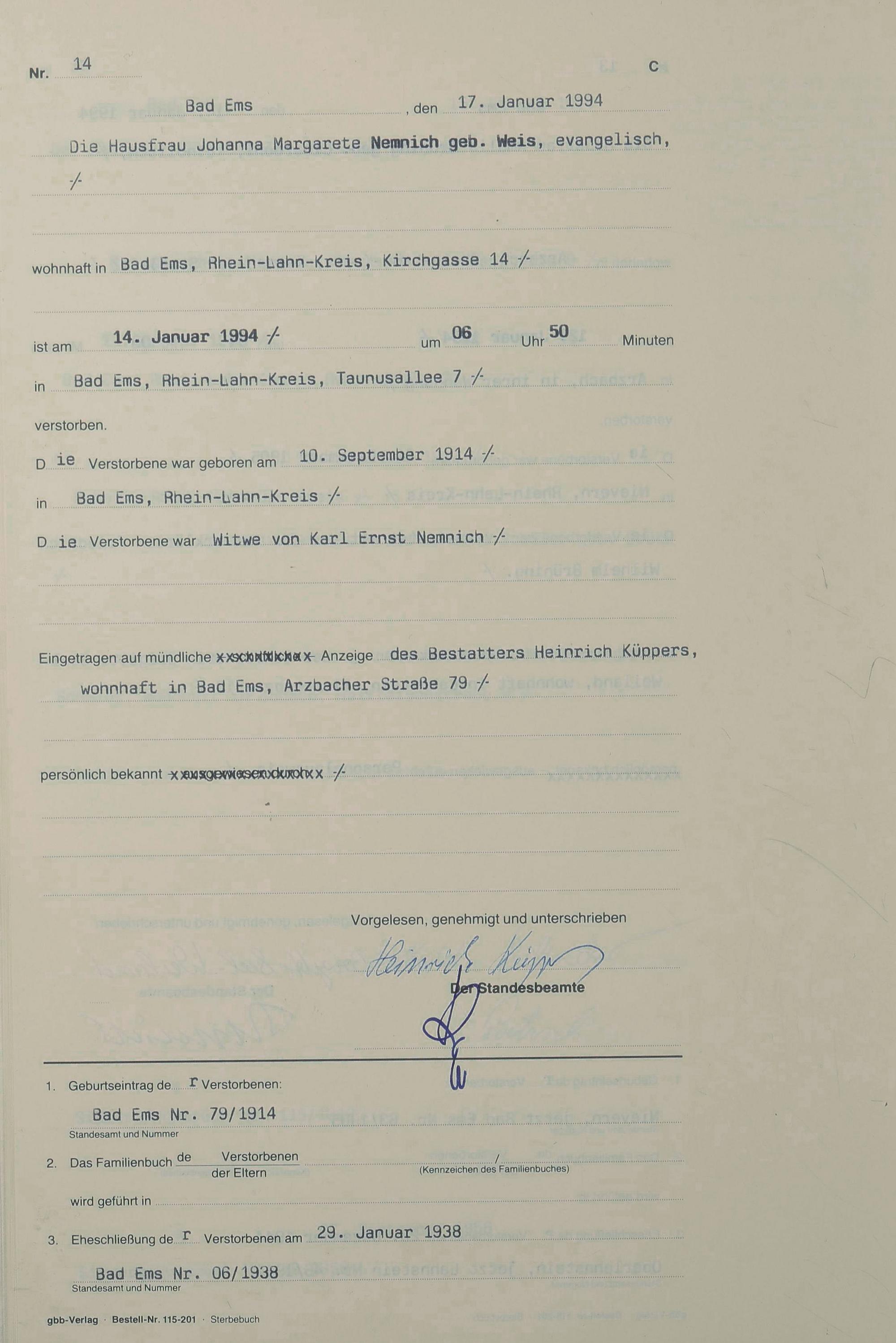 1321: Sterberegister 1994