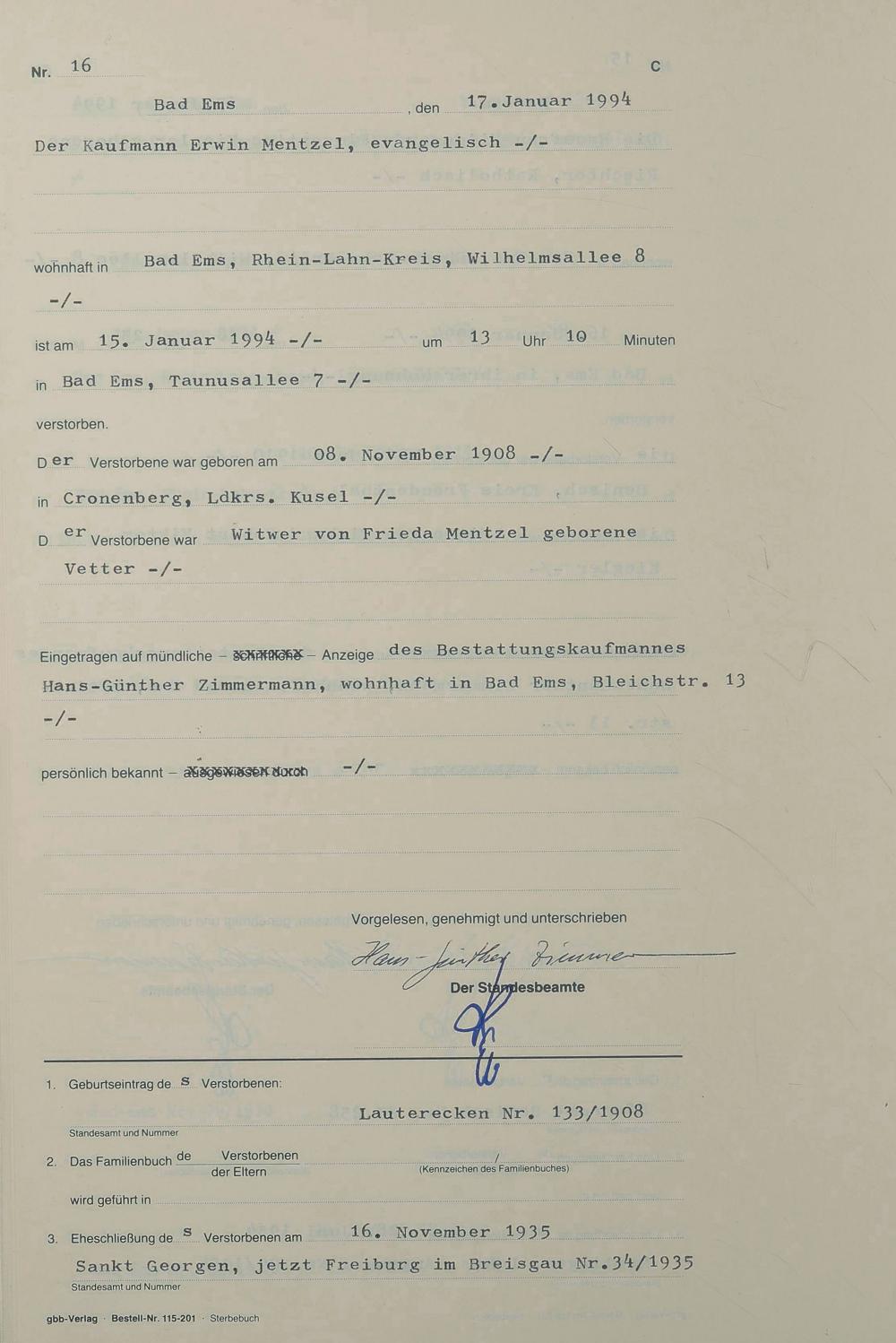Sterberegister 1994