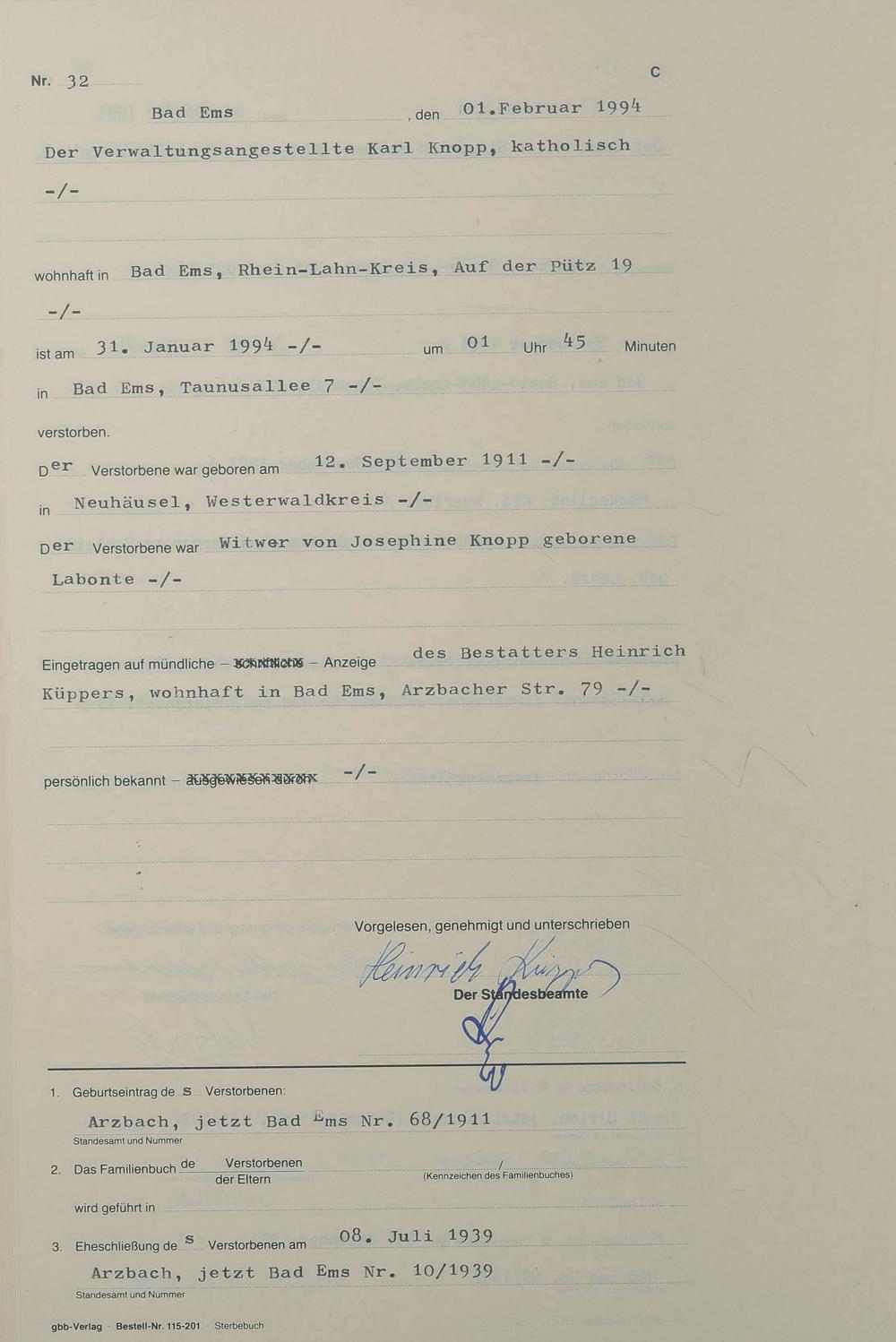 1321: Sterberegister 1994