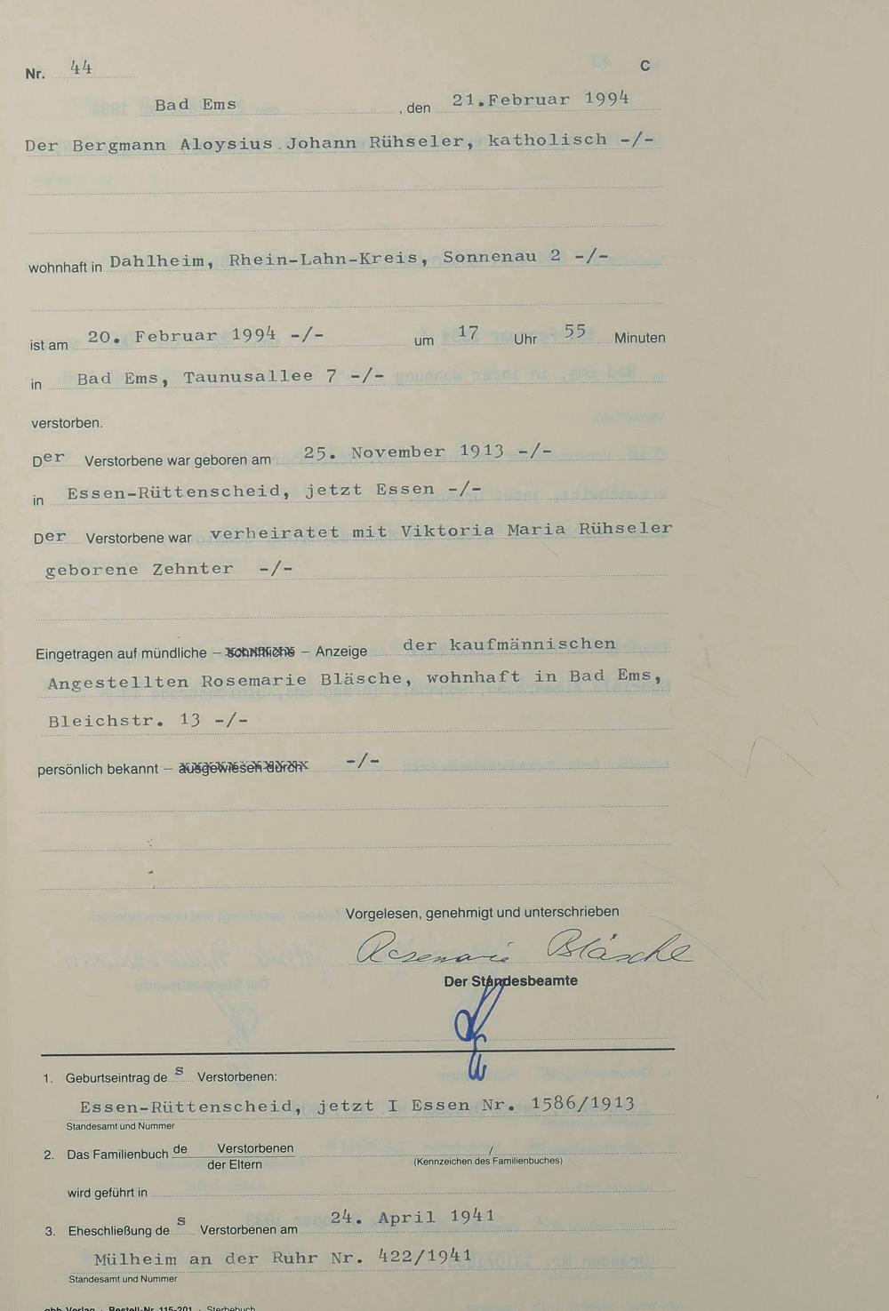 Sterberegister 1994