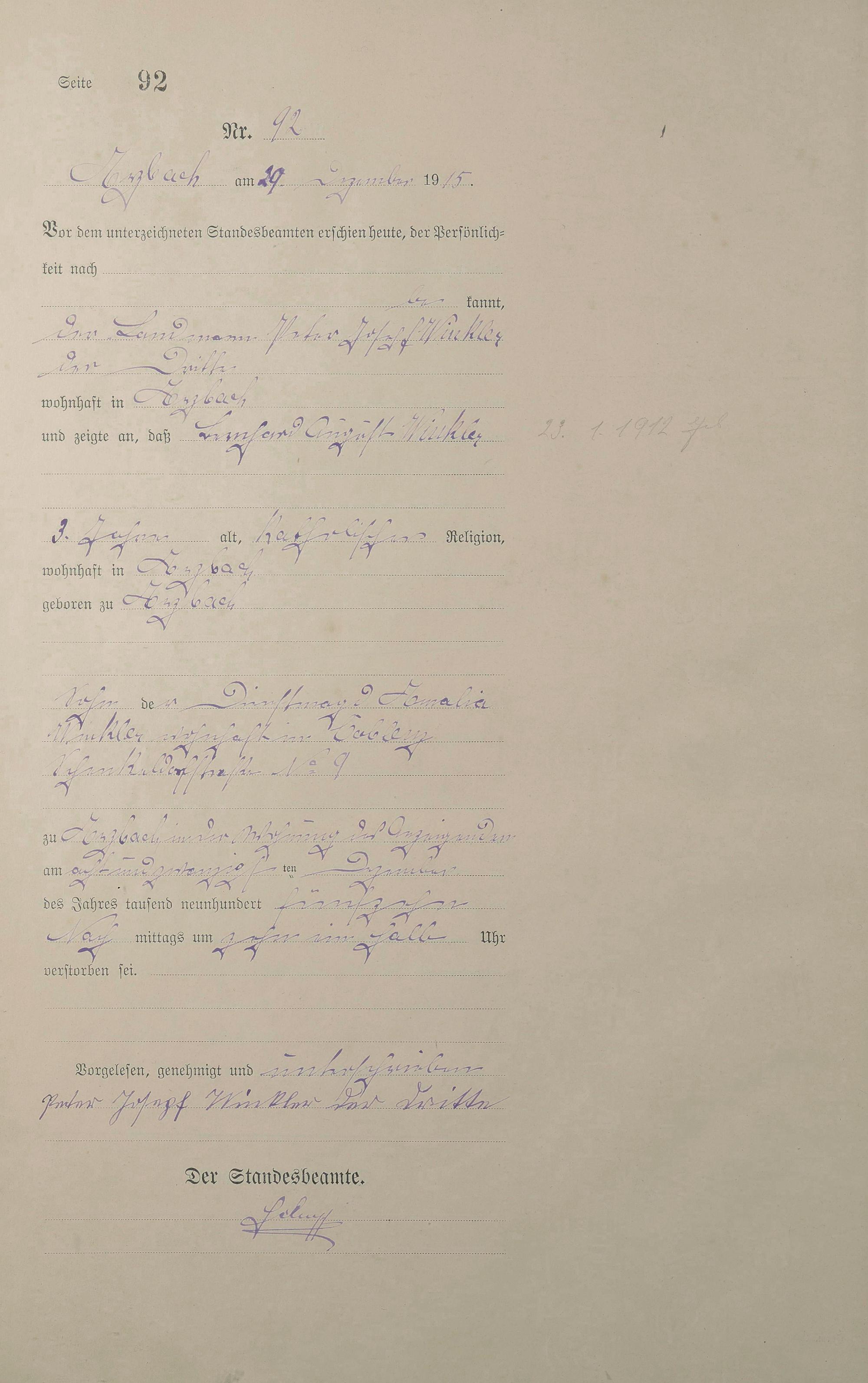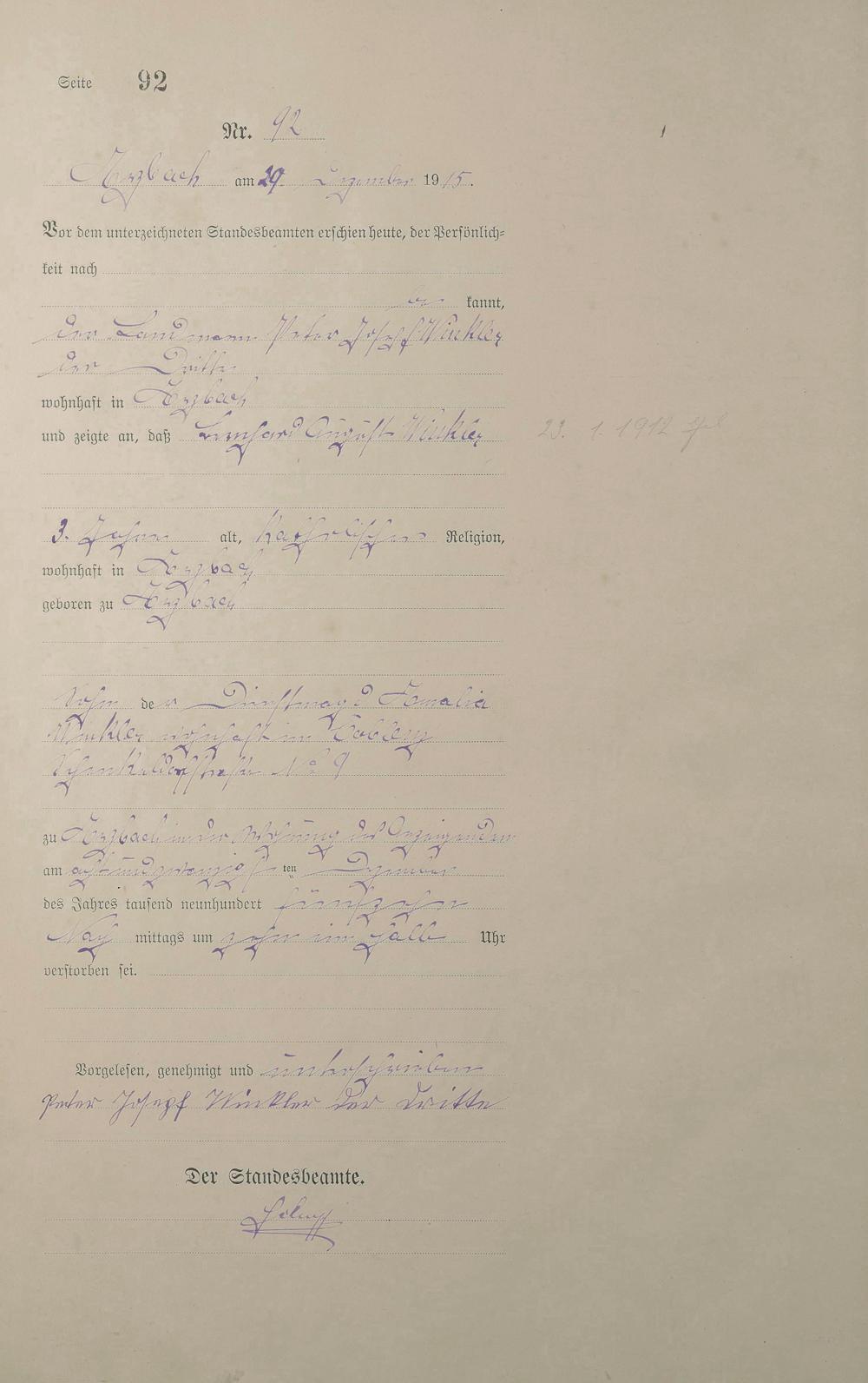 Sterberegister 1915