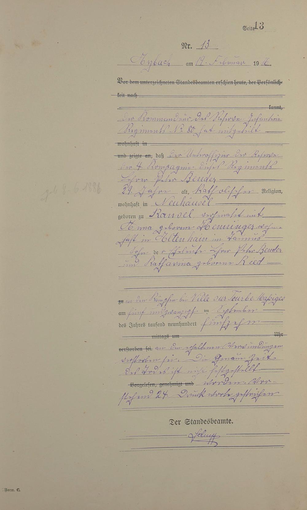 Sterberegister 1916