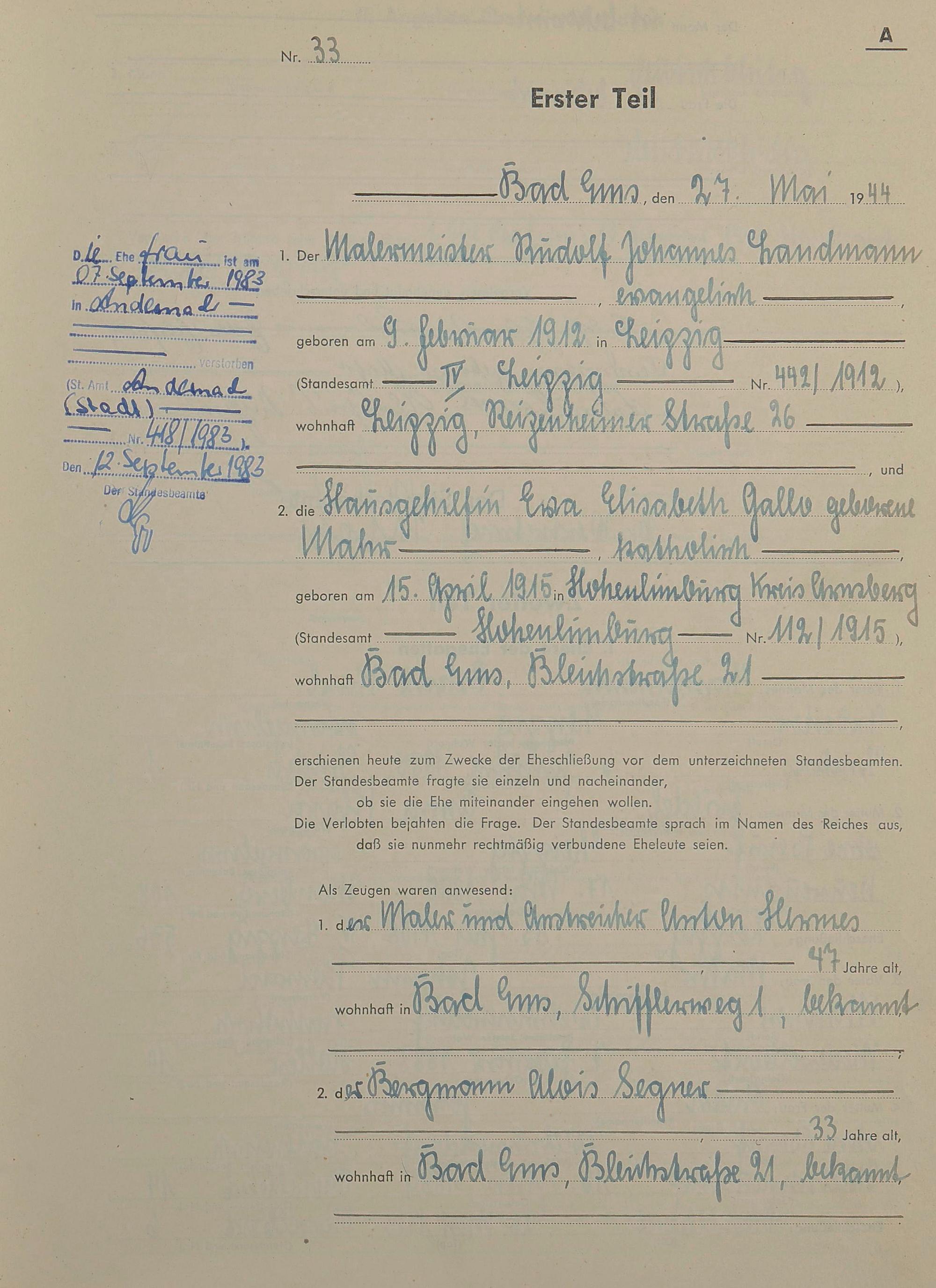 Heiratsregister 1944