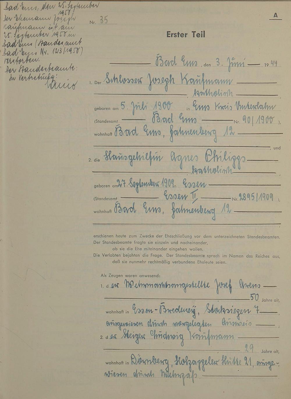 Heiratsregister 1944