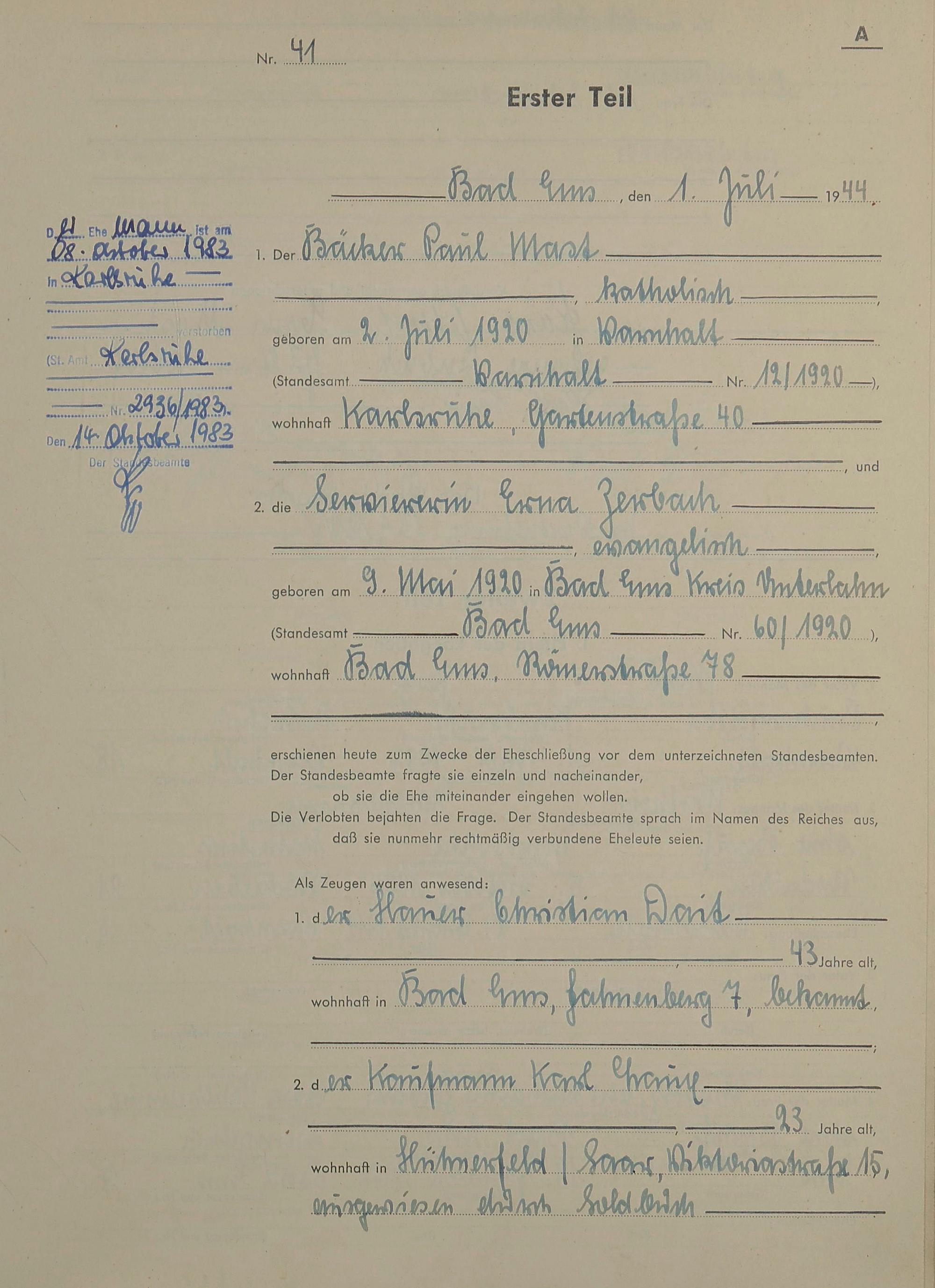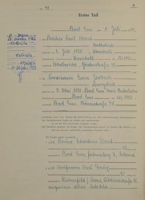 Heiratsregister 1944