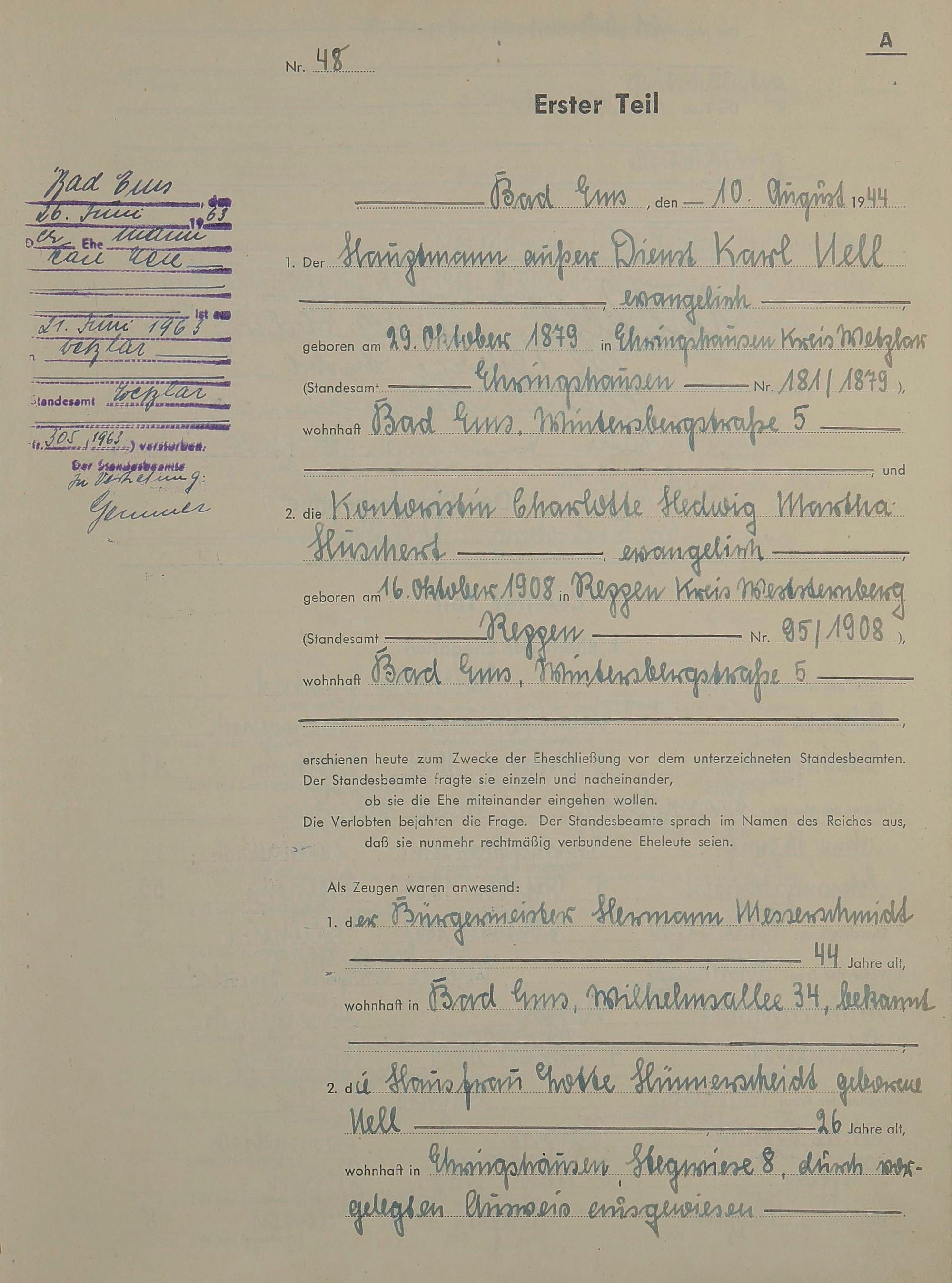 Heiratsregister 1944