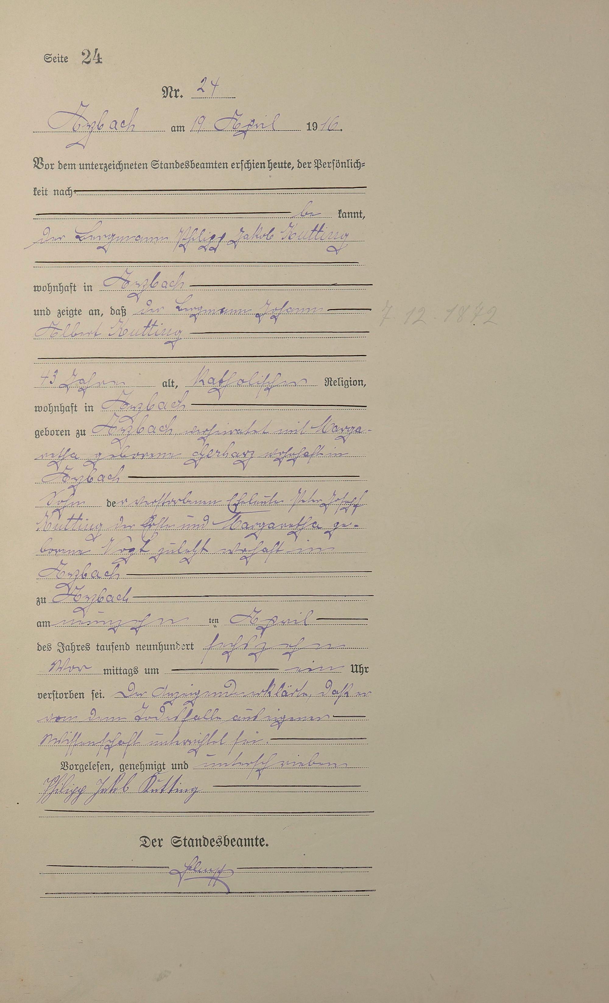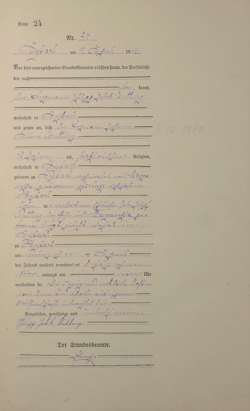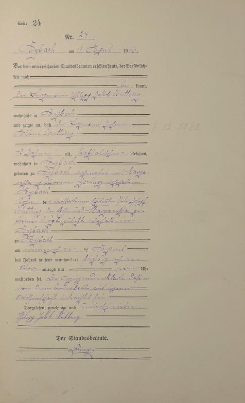 Sterberegister 1916