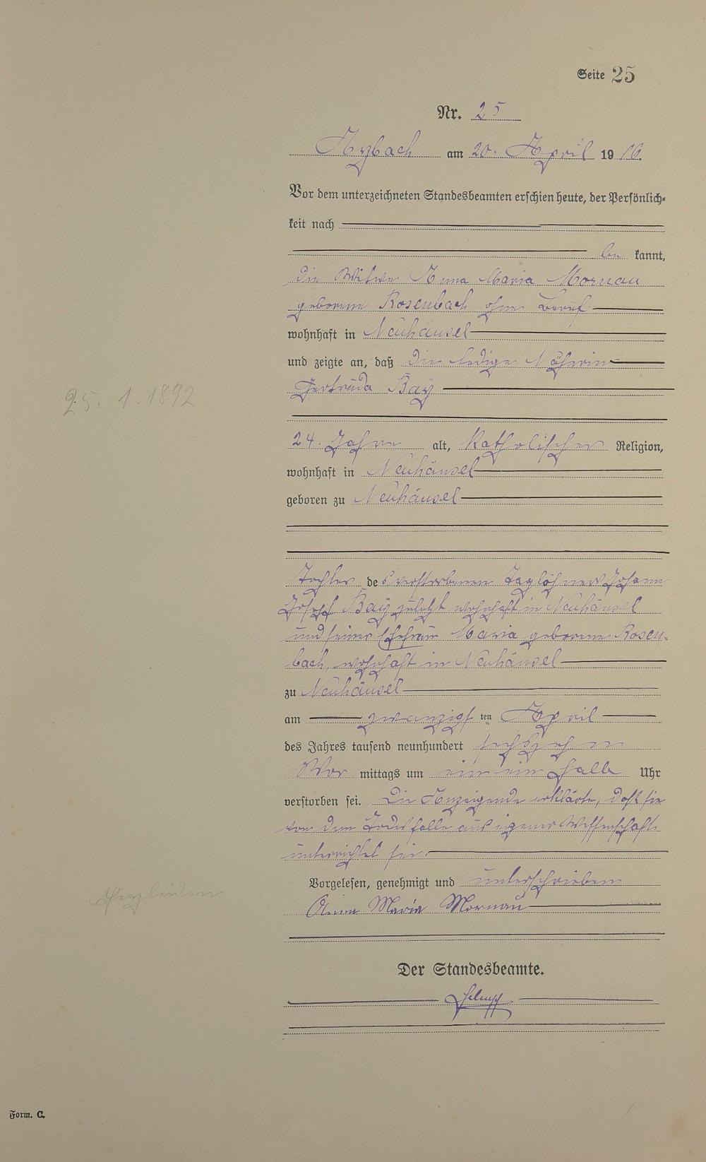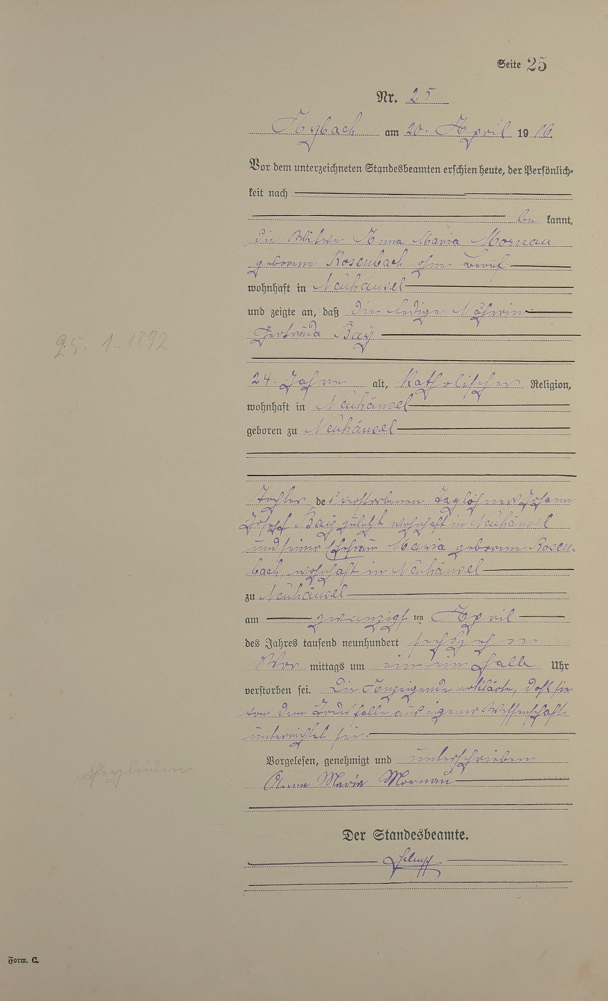 Sterberegister 1916
