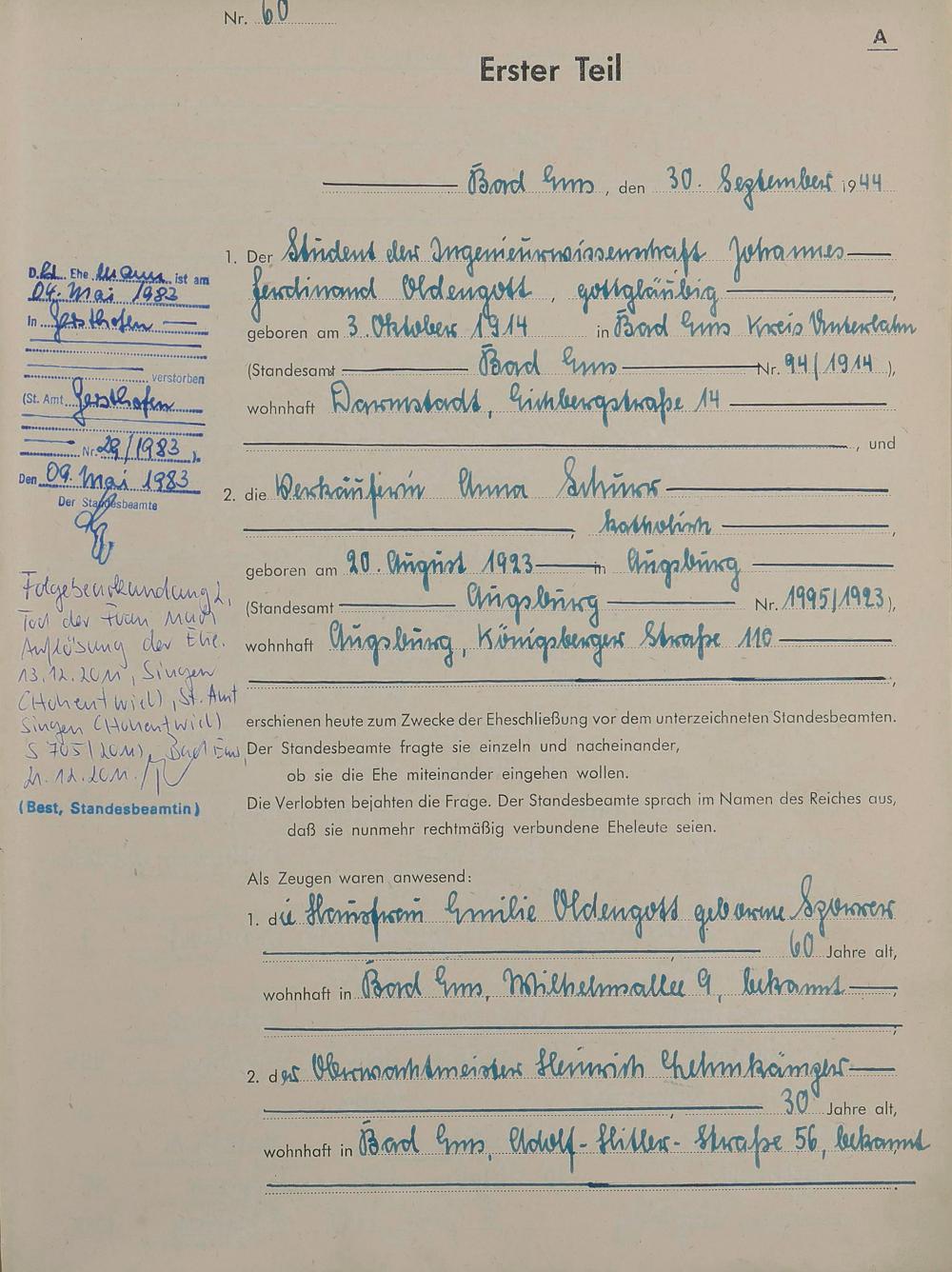 Heiratsregister 1944