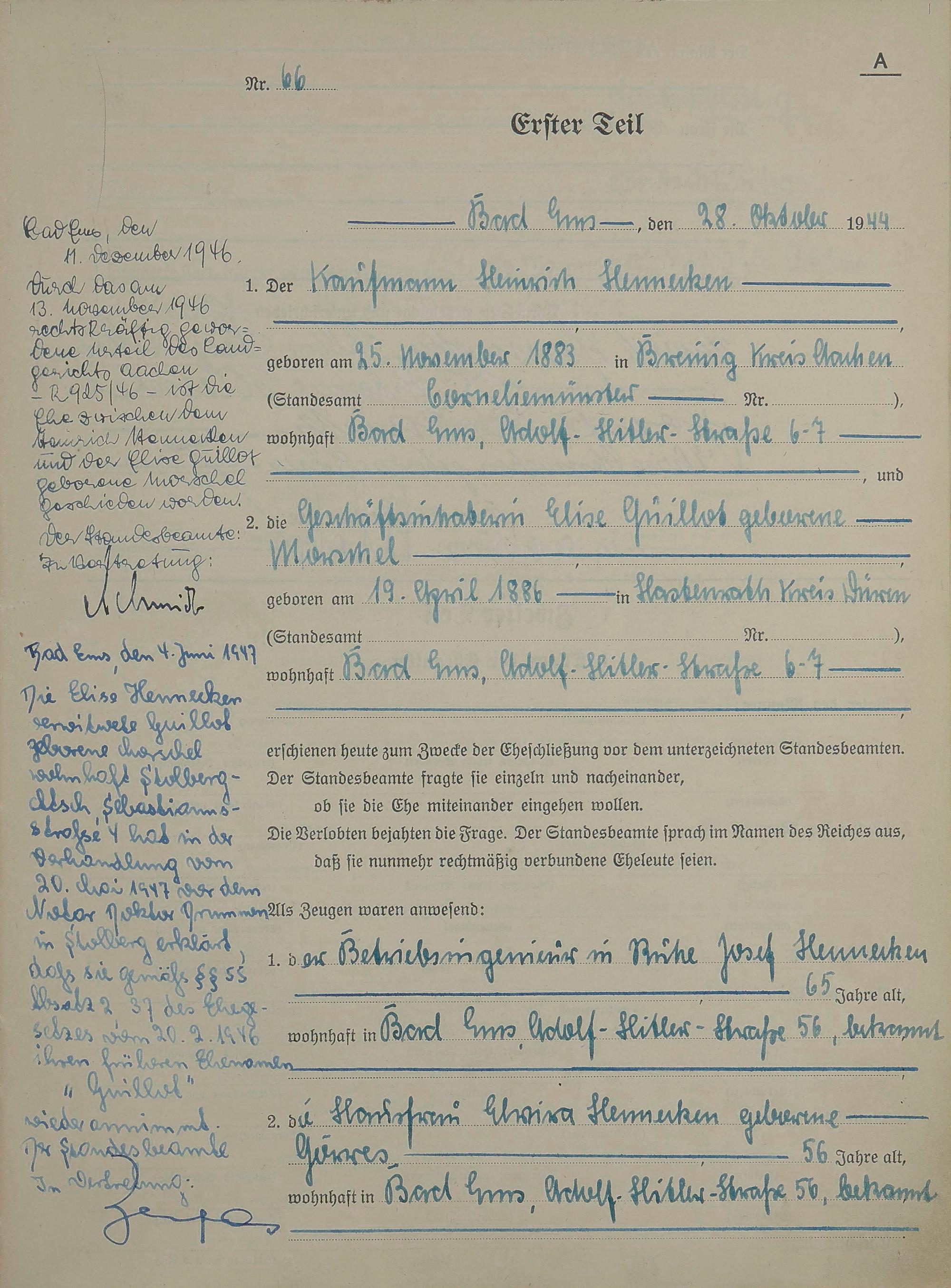 Heiratsregister 1944