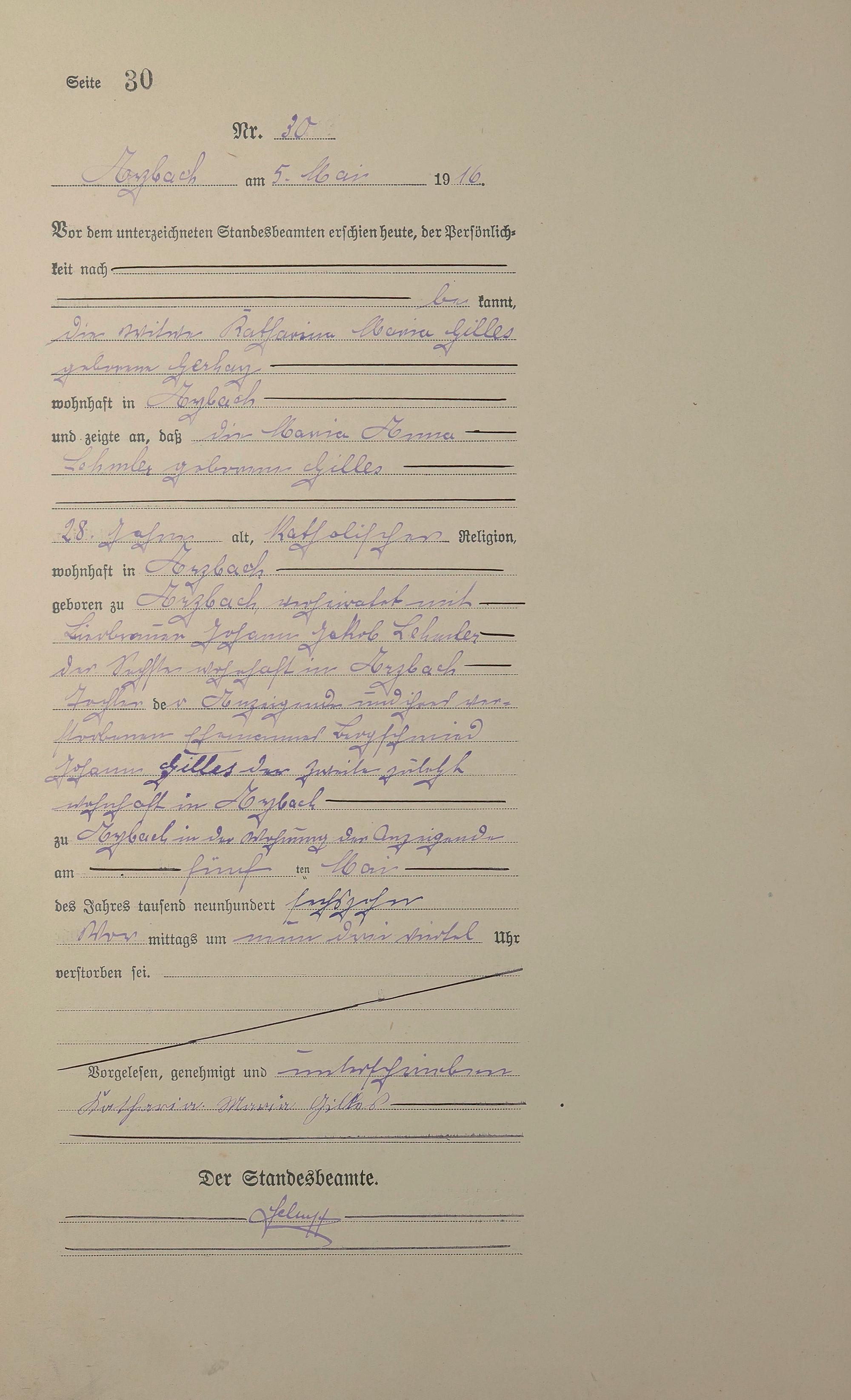 Sterberegister 1916