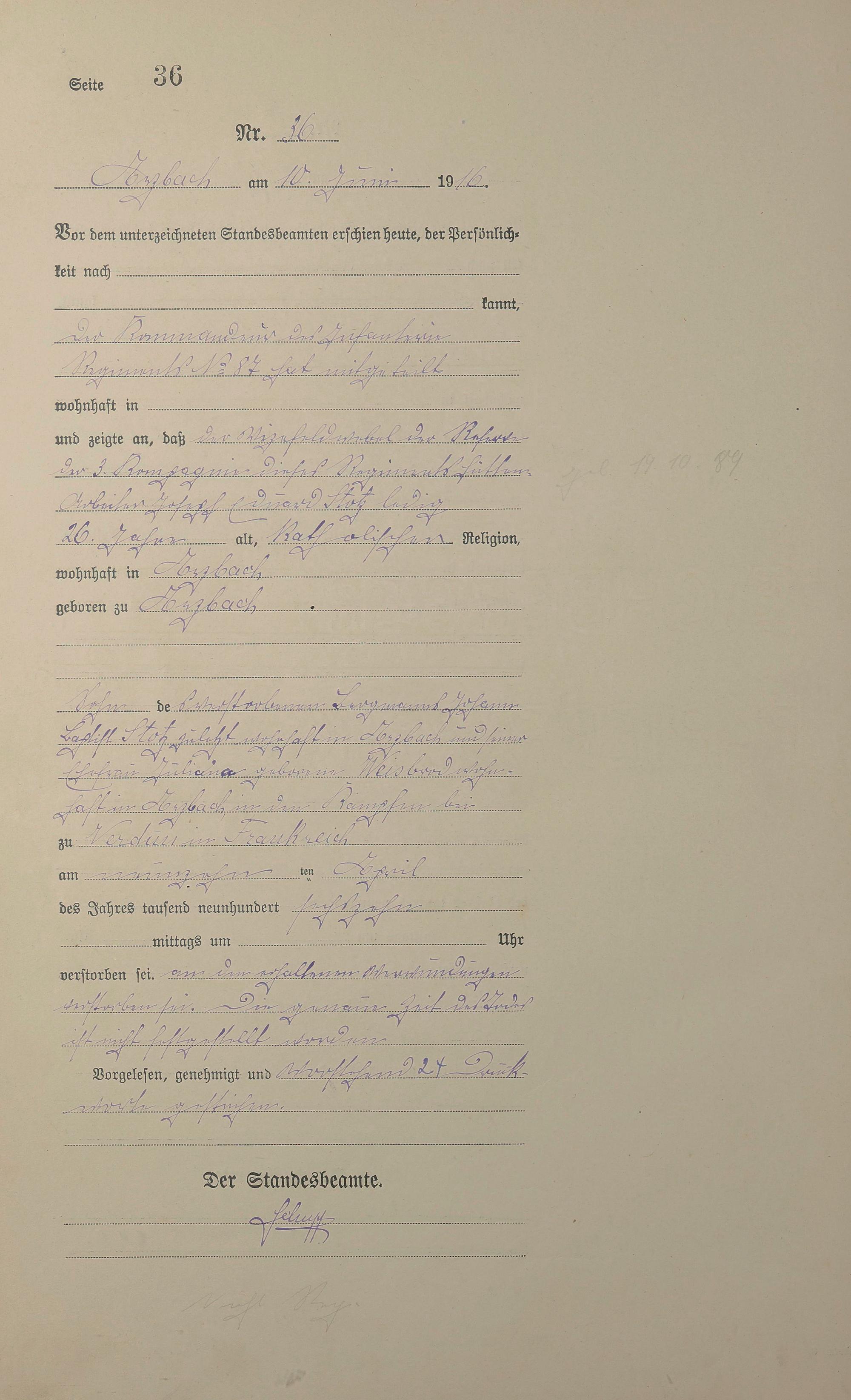 Sterberegister 1916