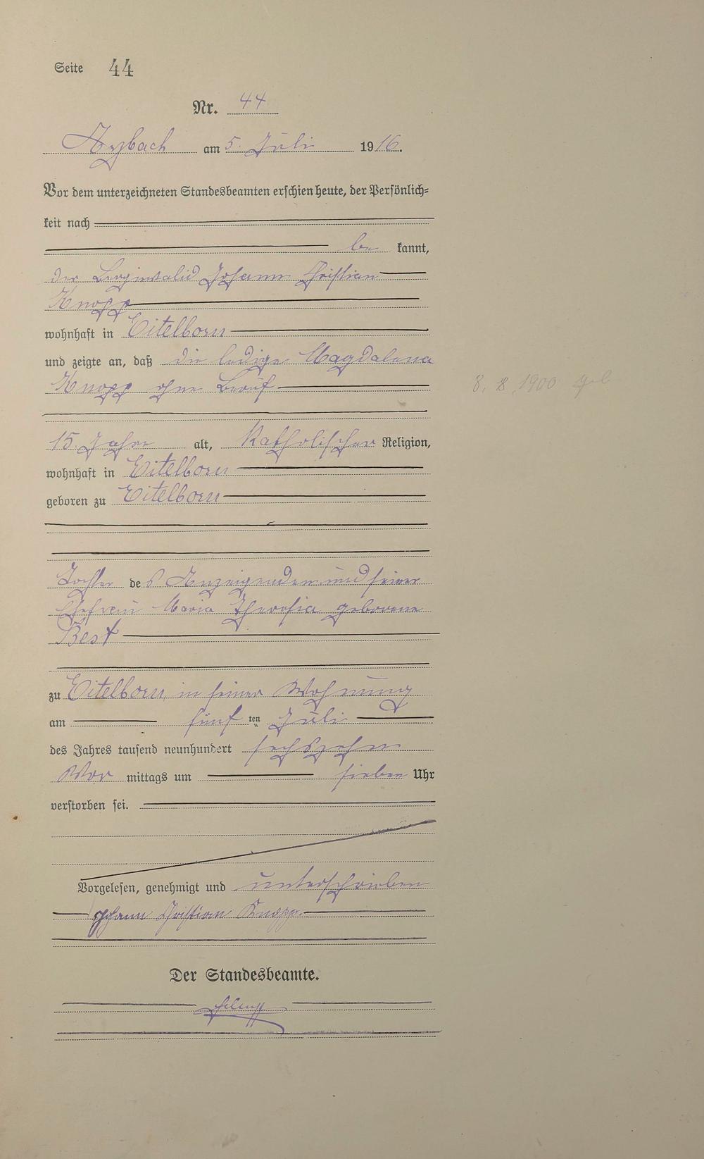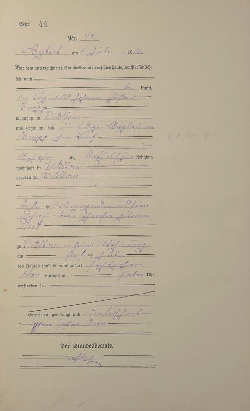 Sterberegister 1916
