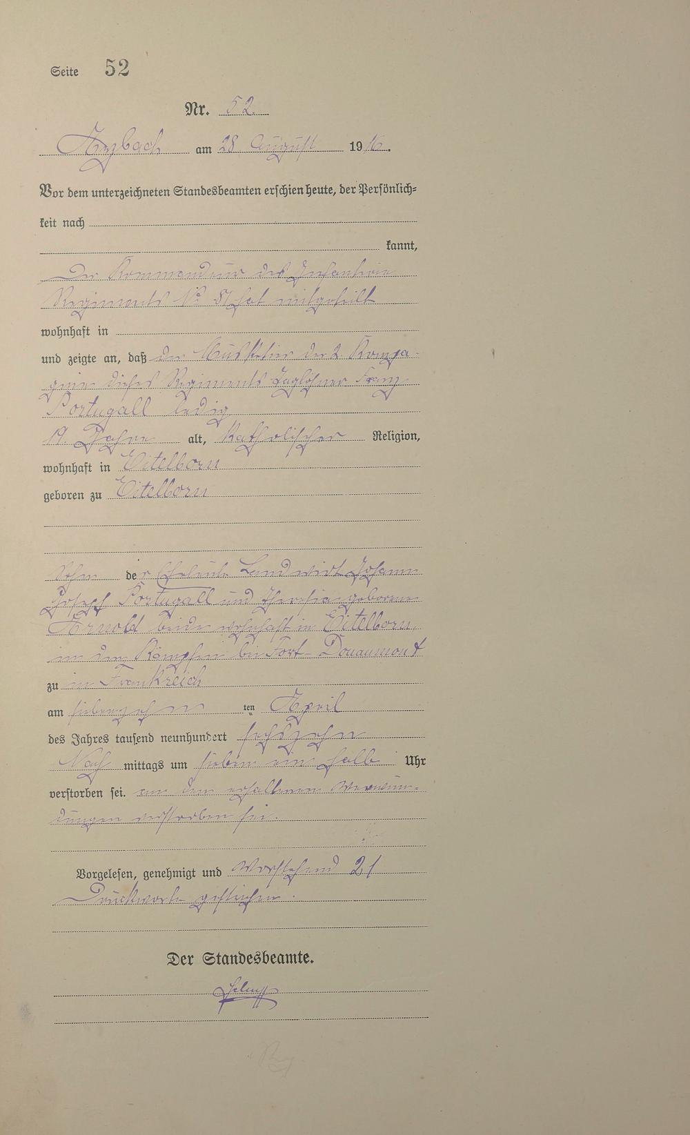 Sterberegister 1916