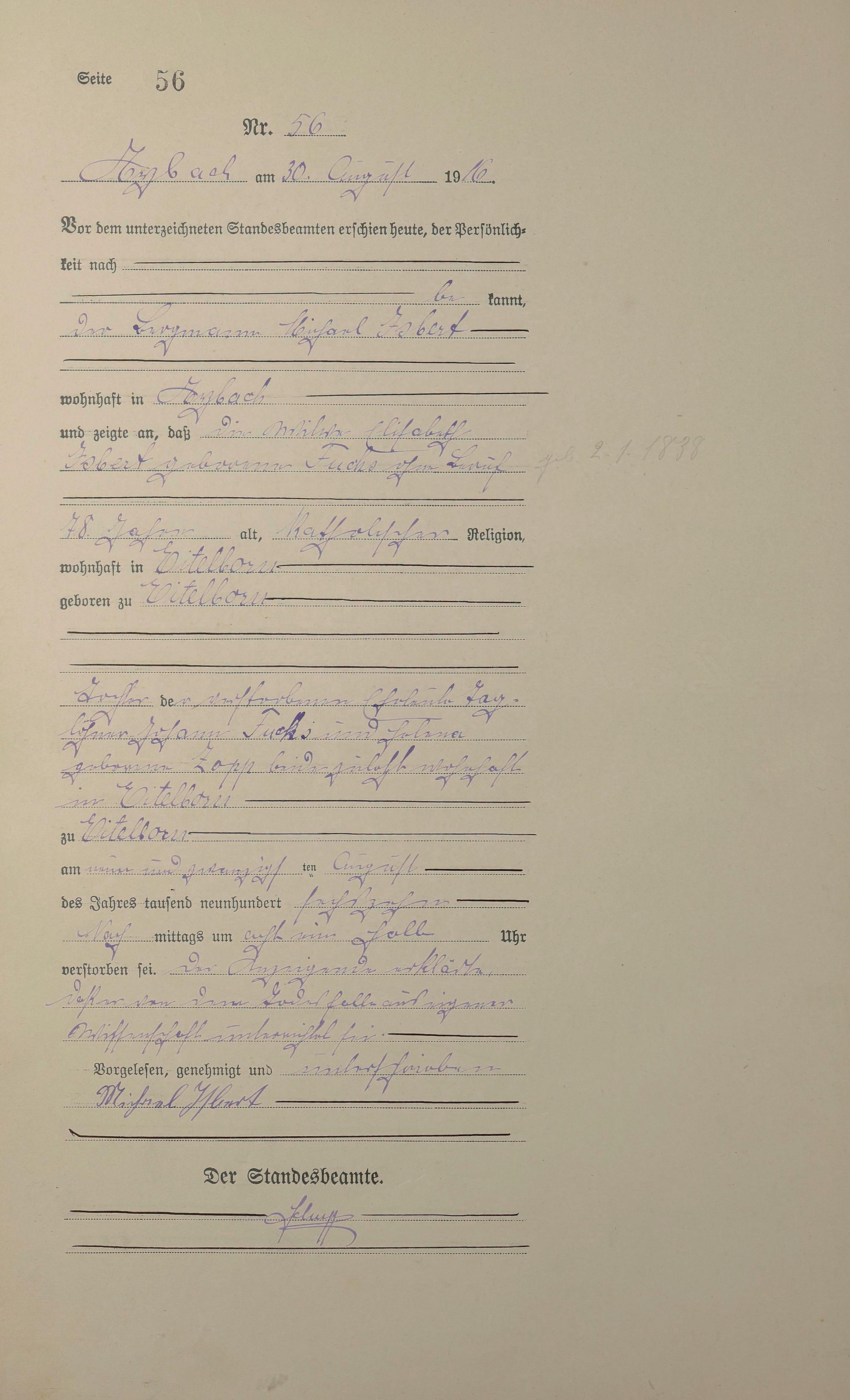 Sterberegister 1916