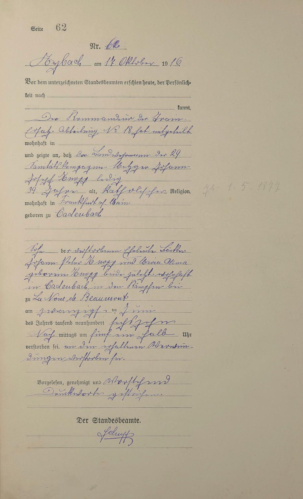 Sterberegister 1916