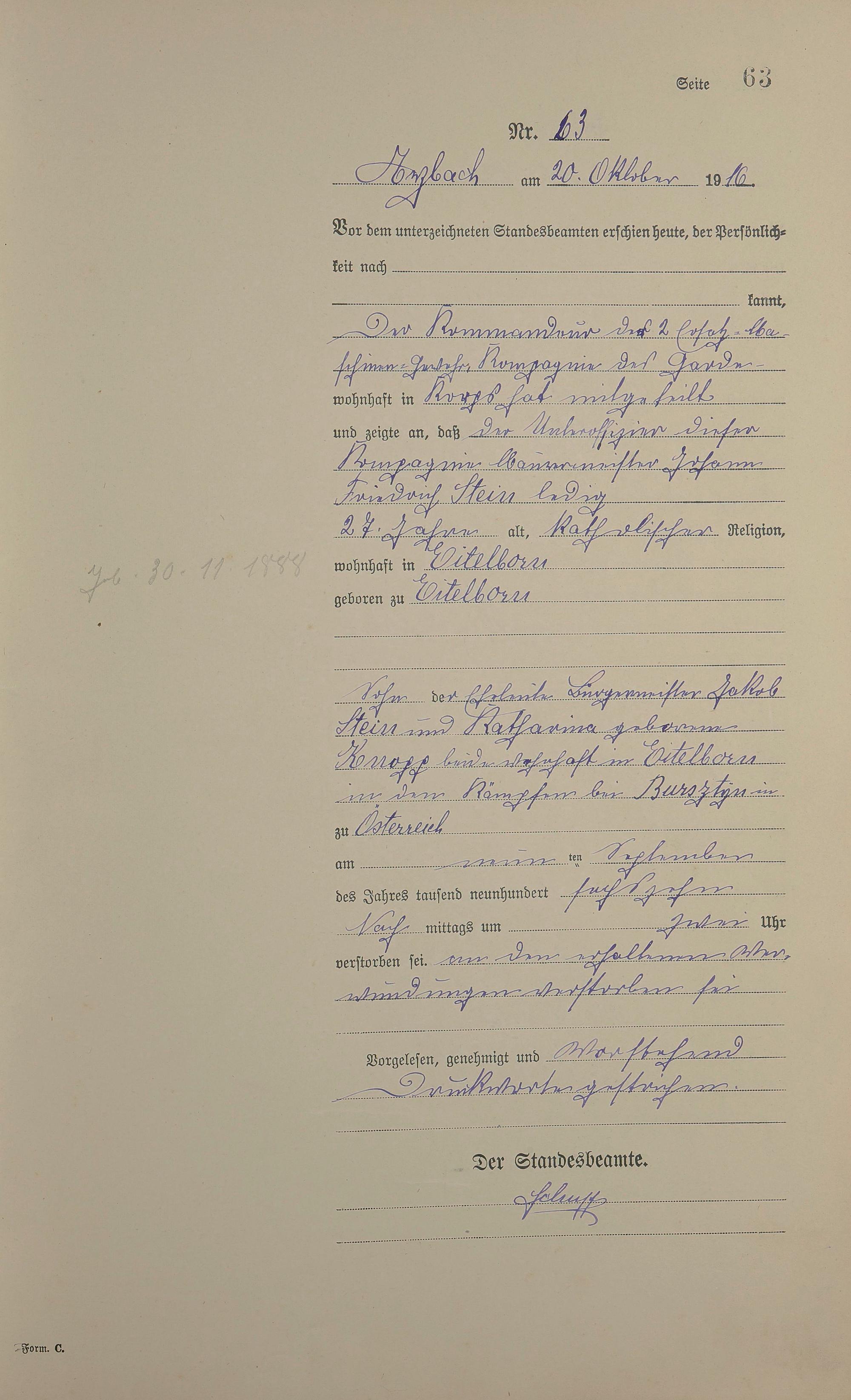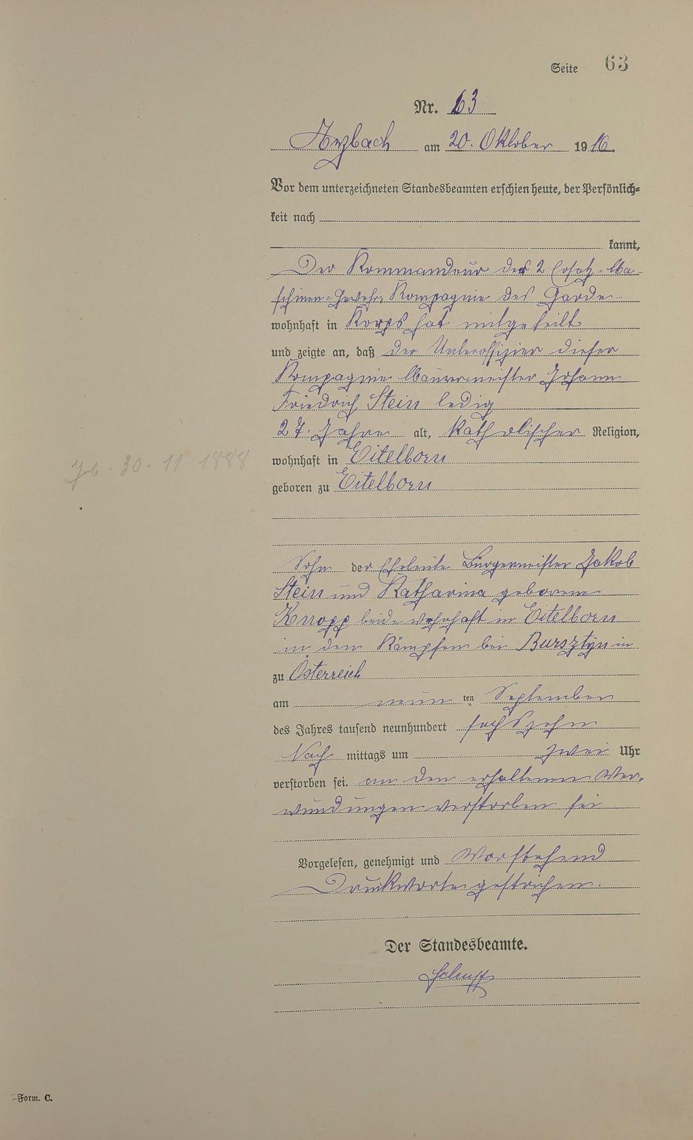 Sterberegister 1916