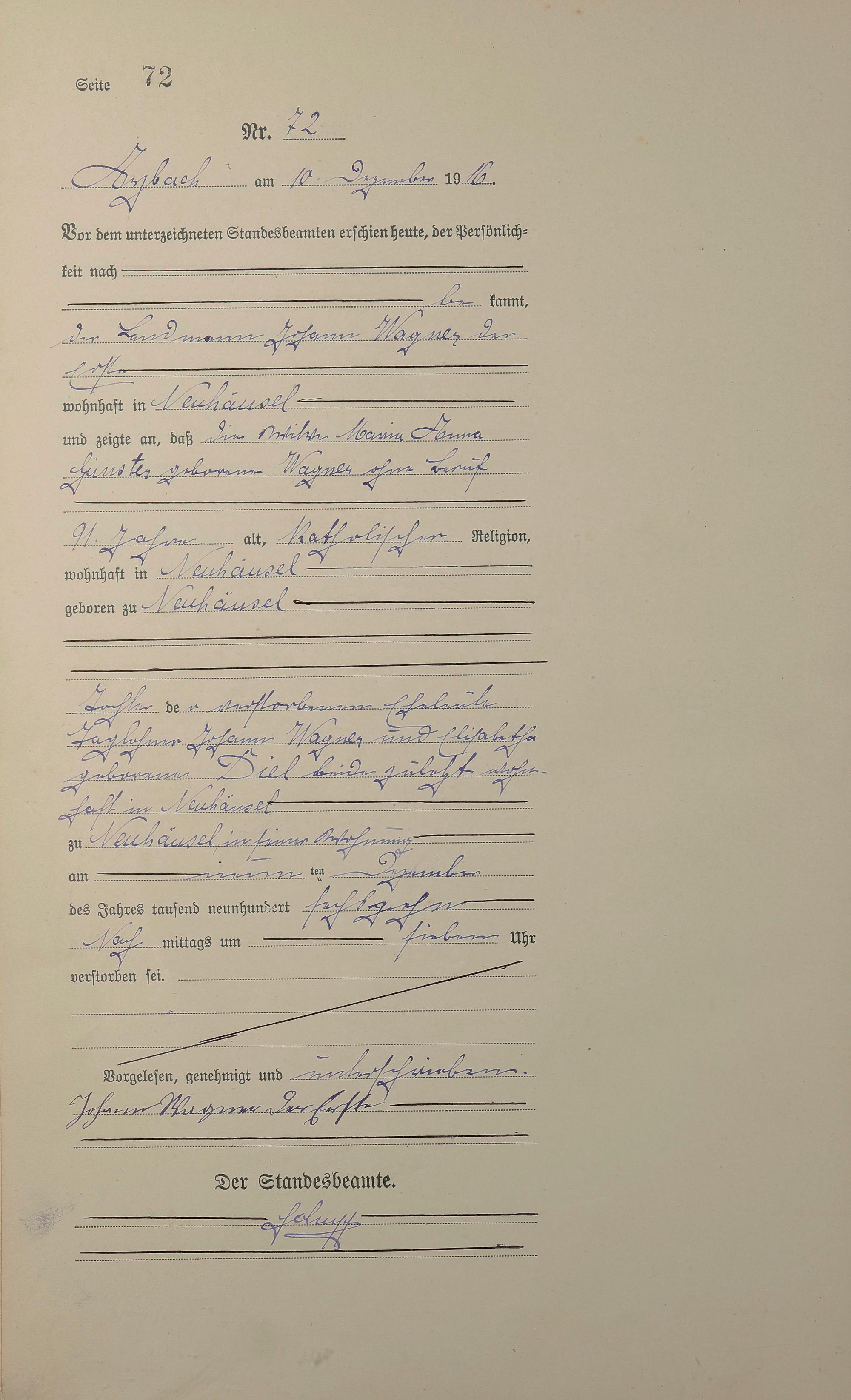 Sterberegister 1916