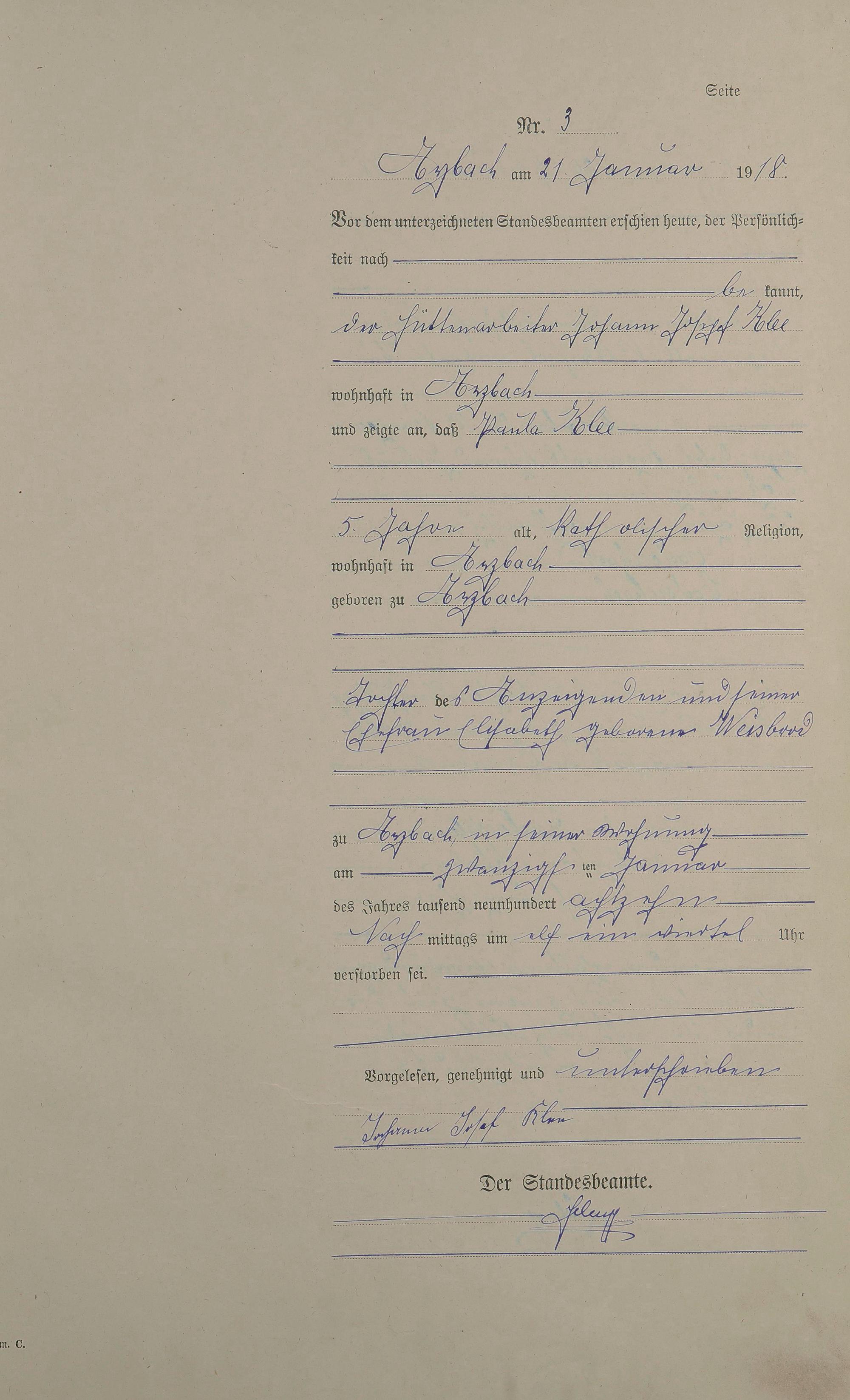 Sterberegister 1918