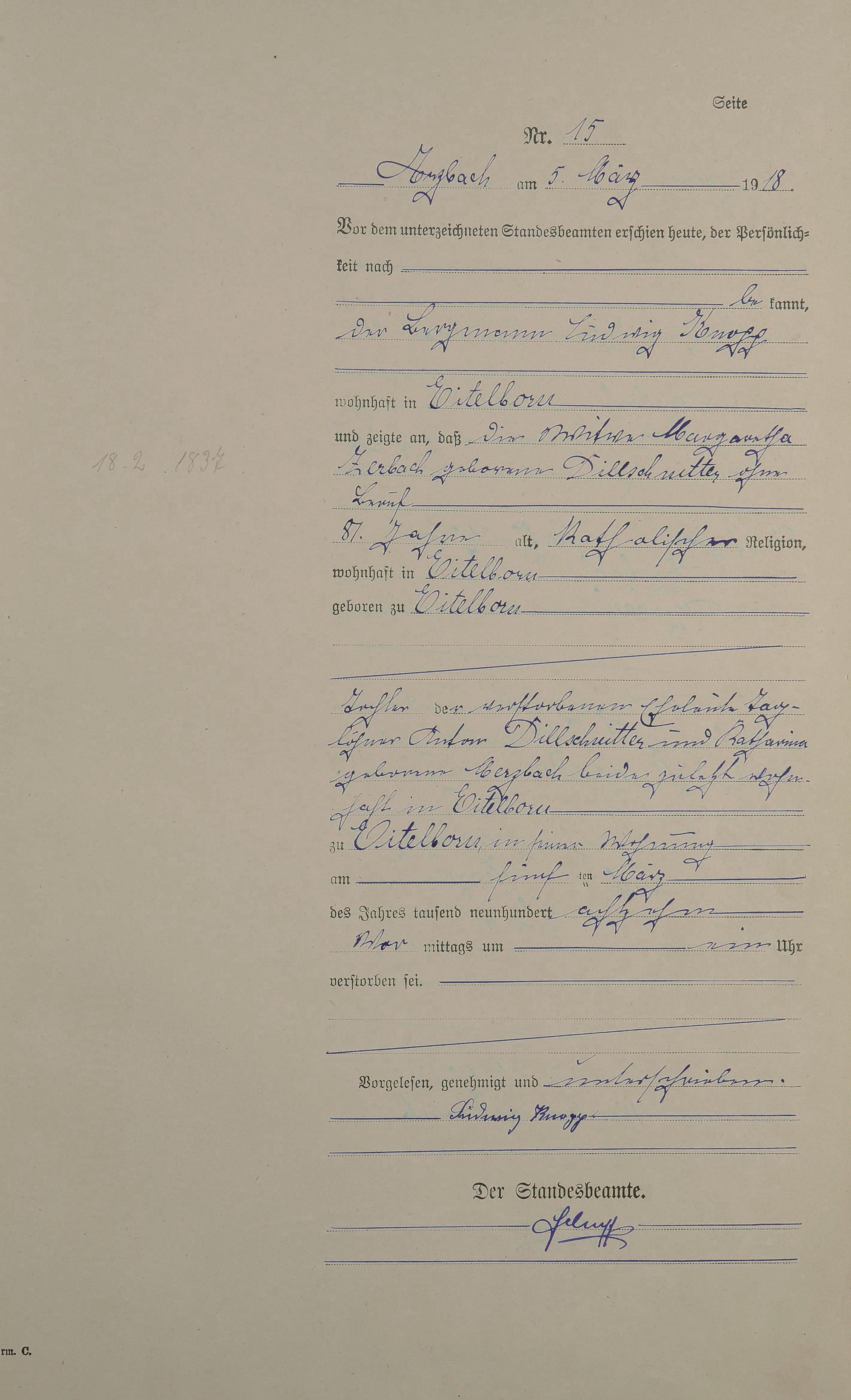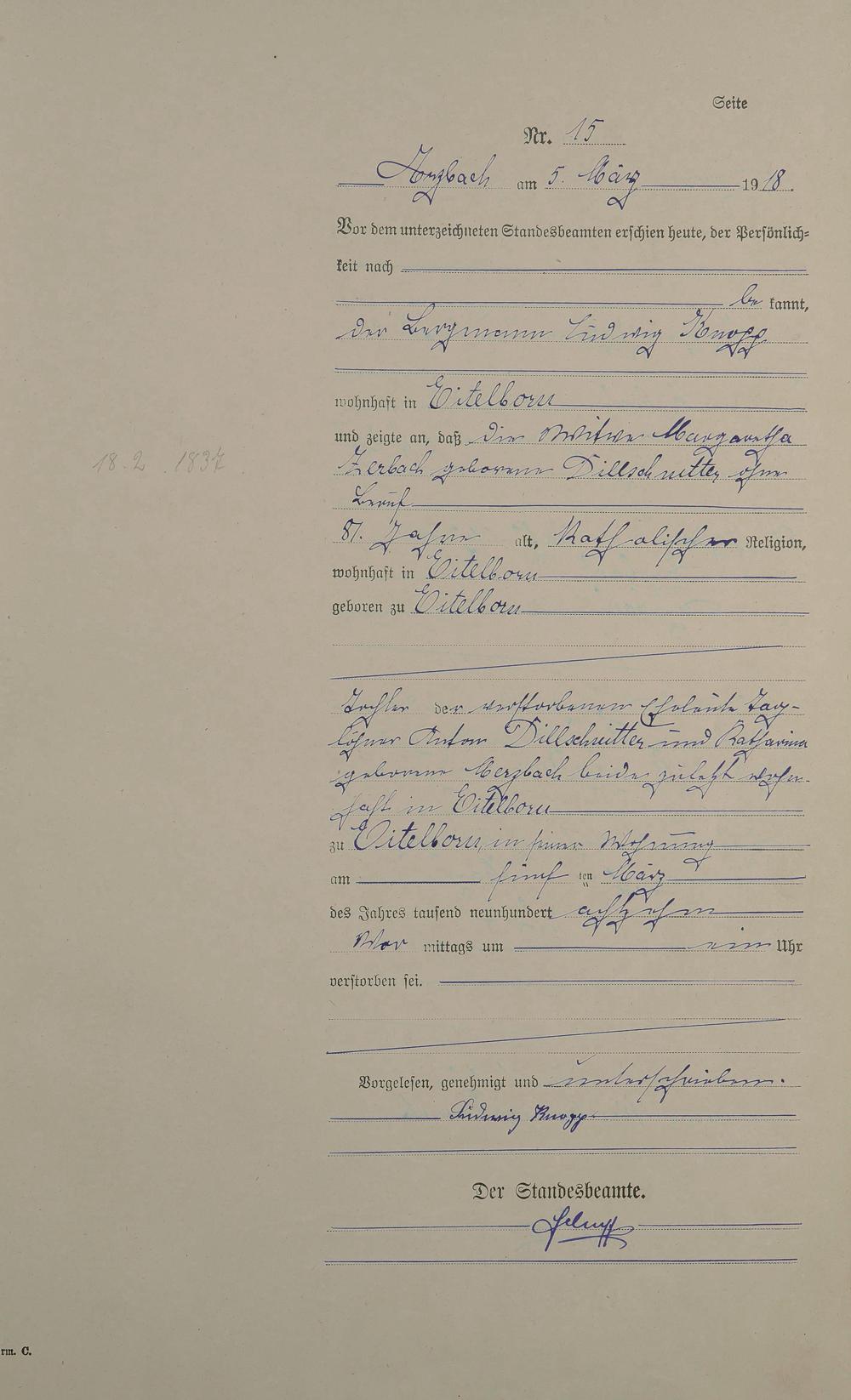 166/5: Sterberegister 1918