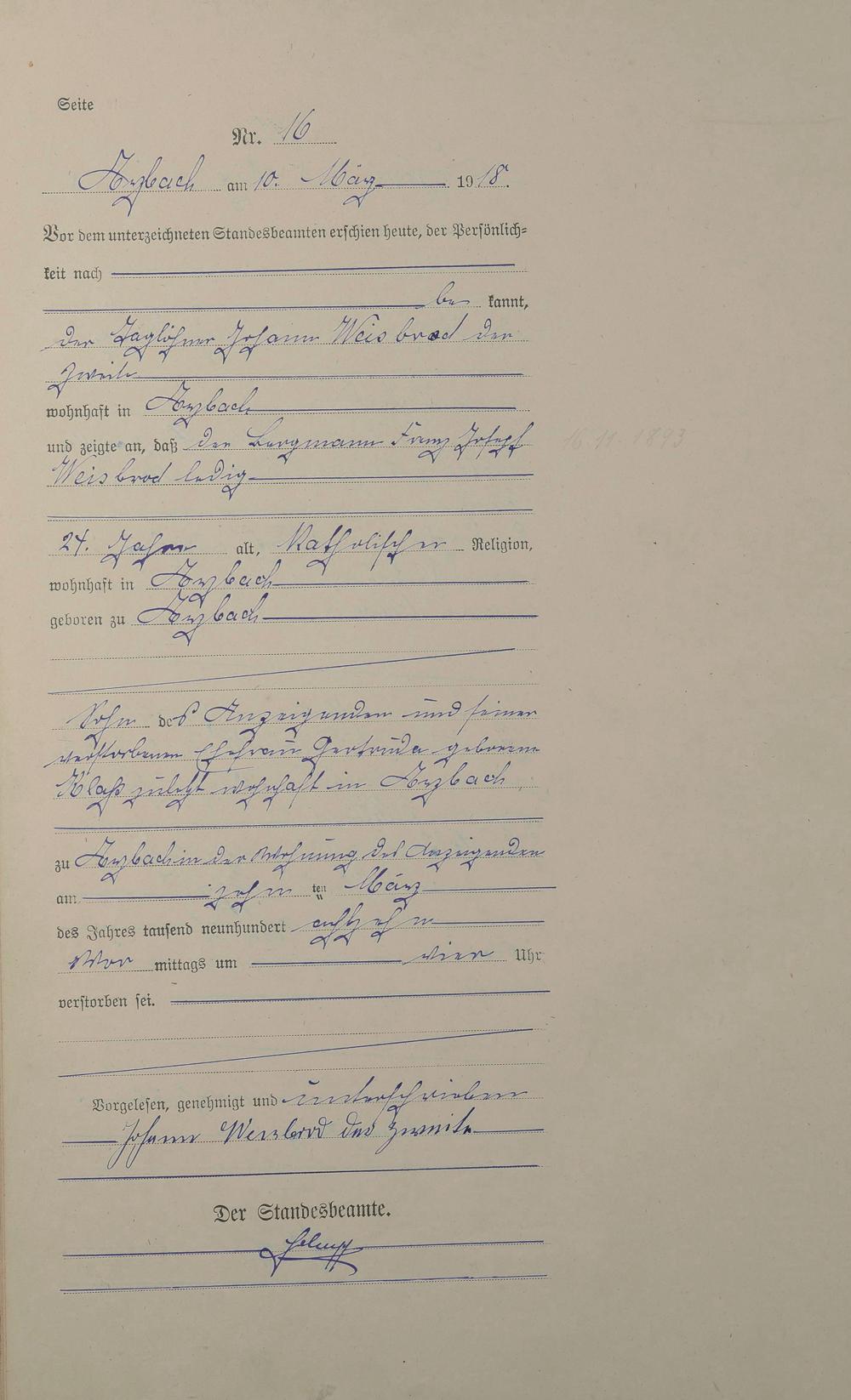 Sterberegister 1918