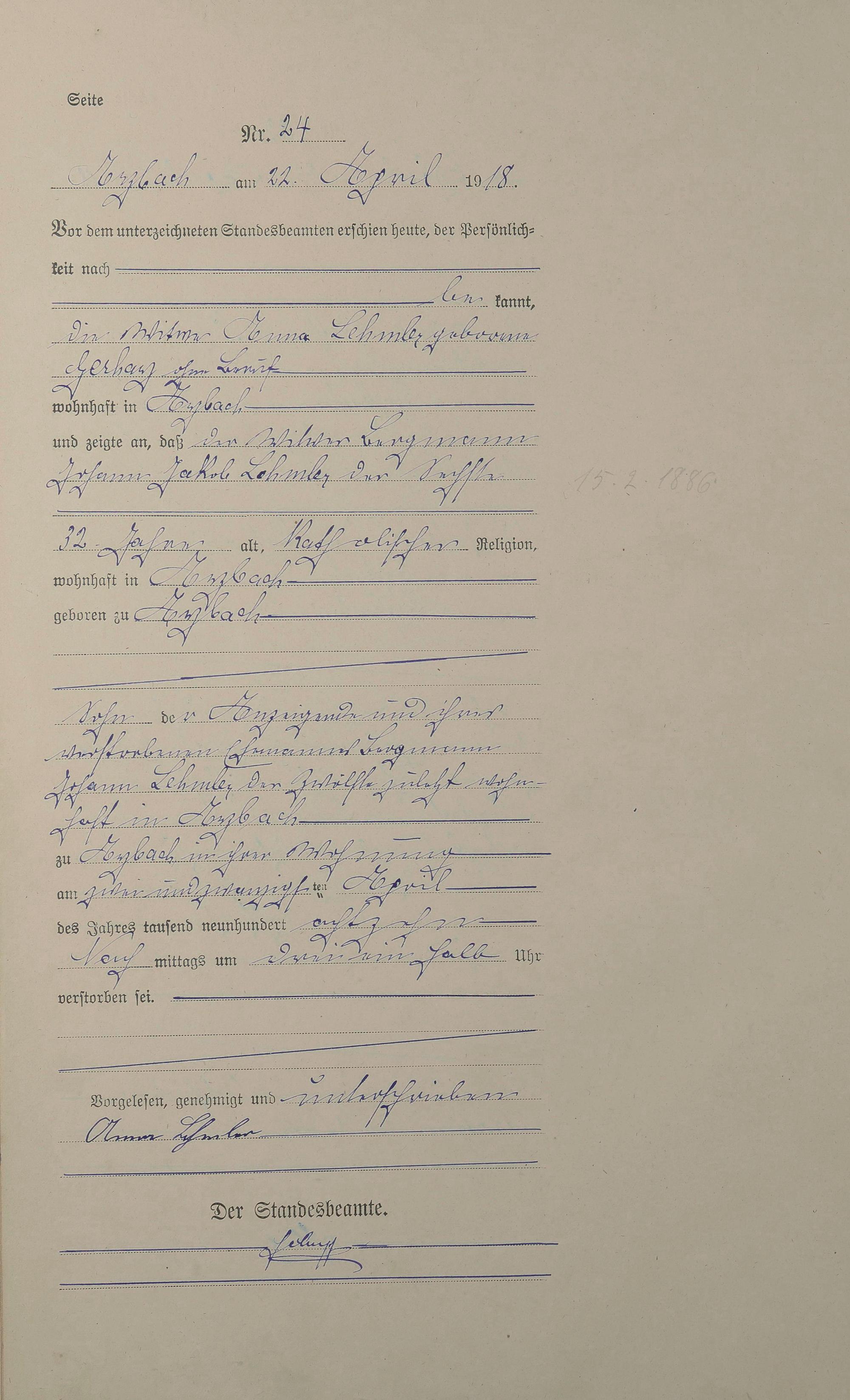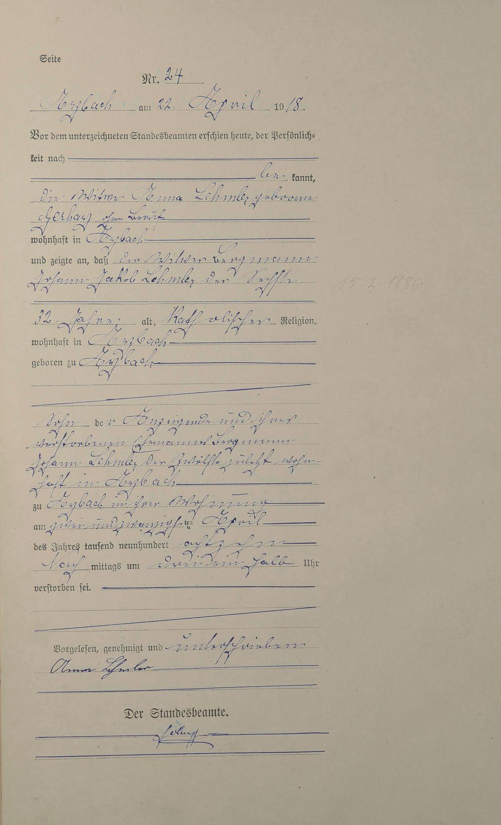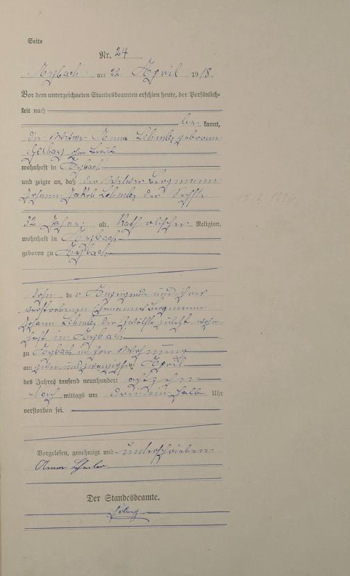 Sterberegister 1918