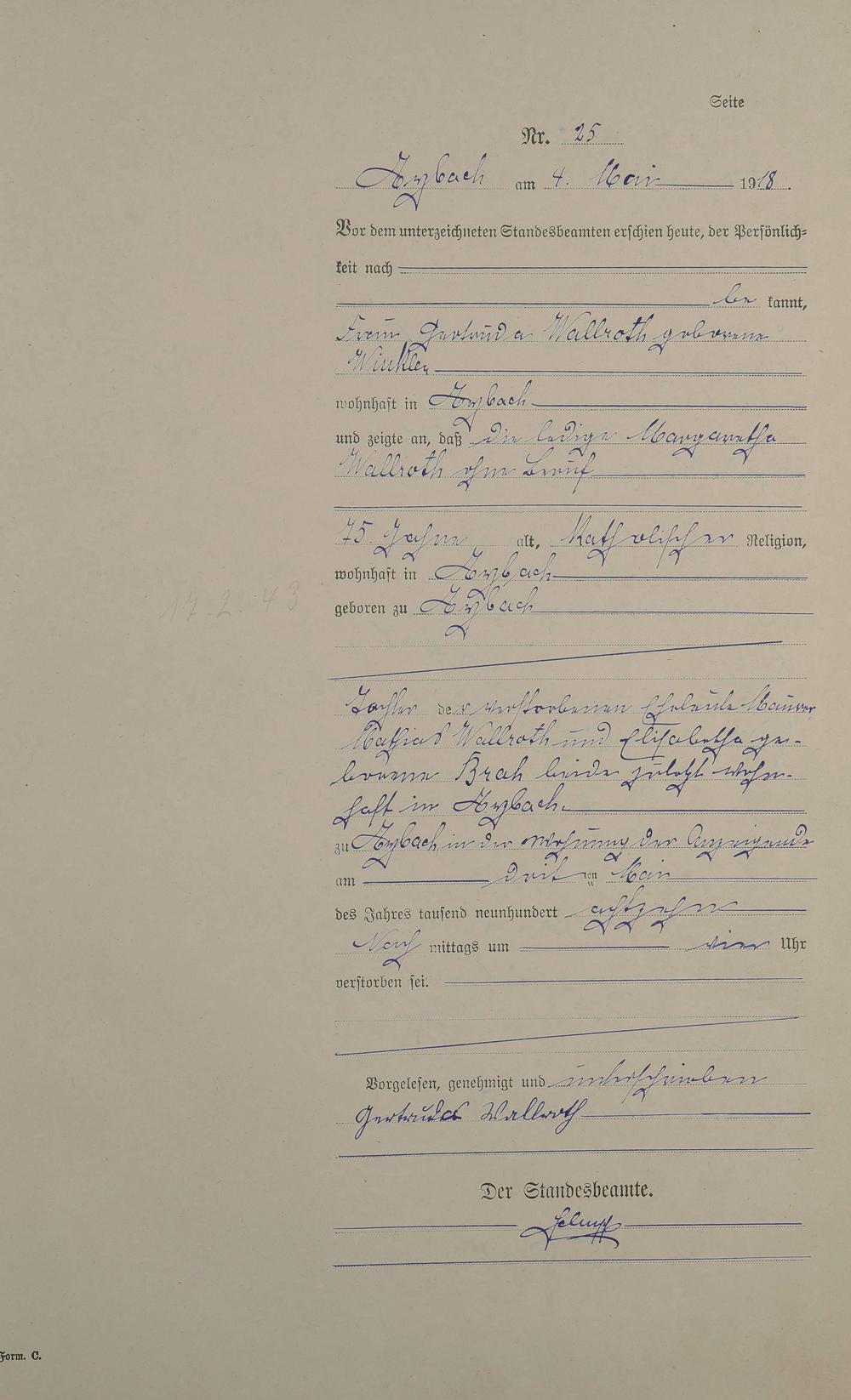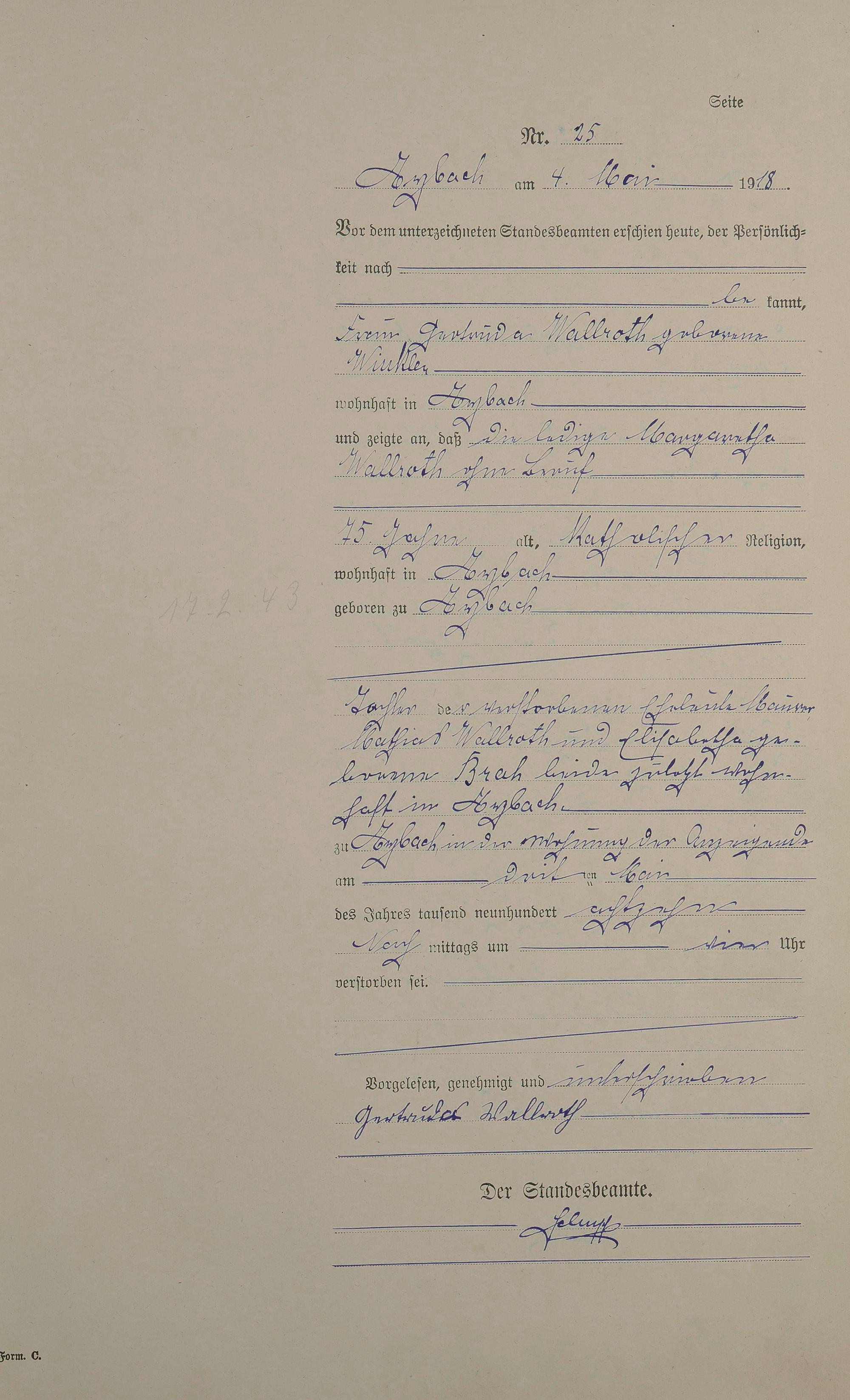 Sterberegister 1918