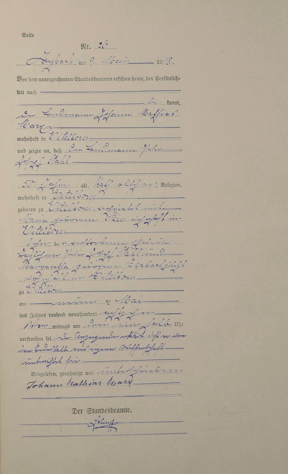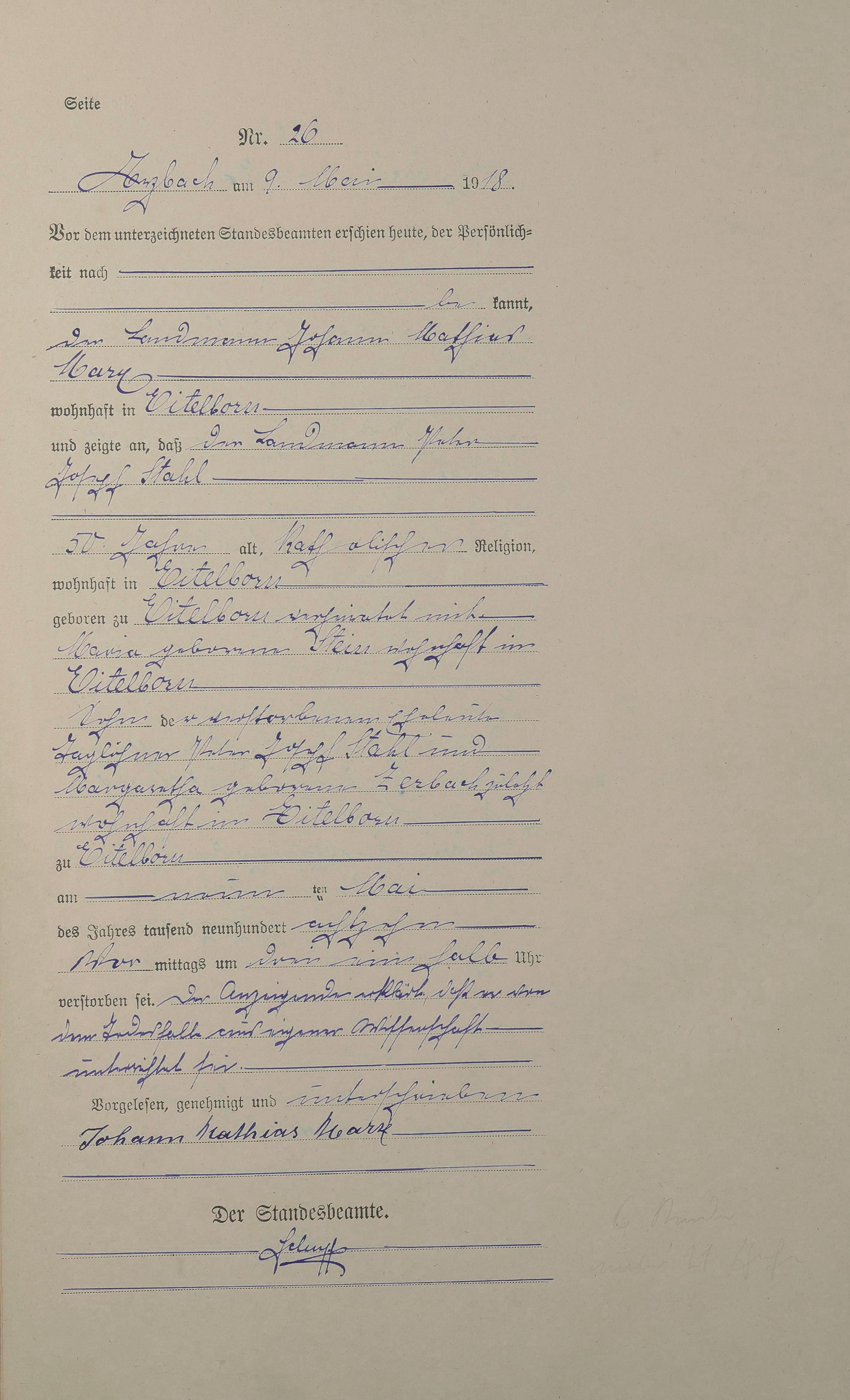 Sterberegister 1918