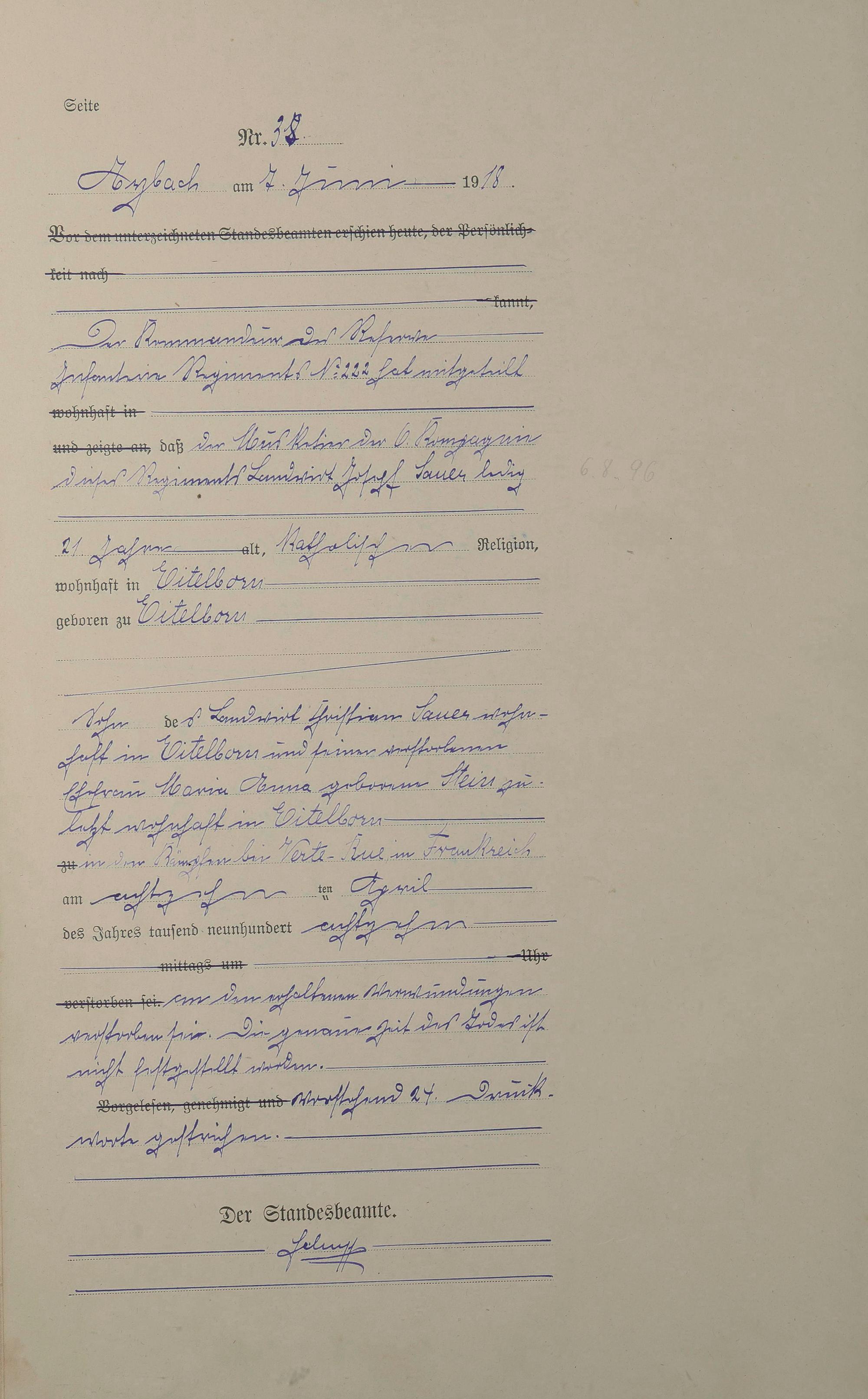 Sterberegister 1918