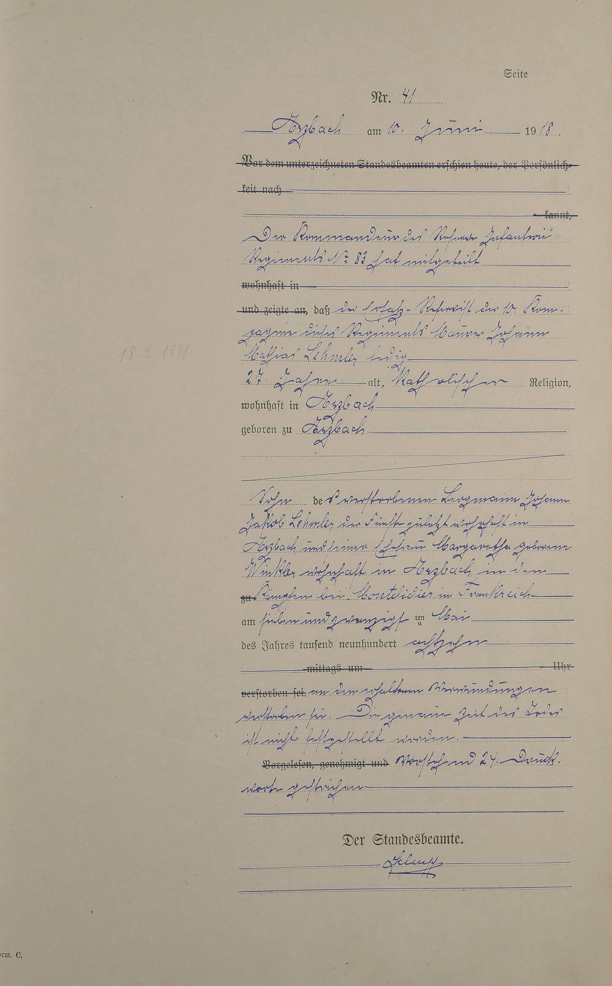 Sterberegister 1918