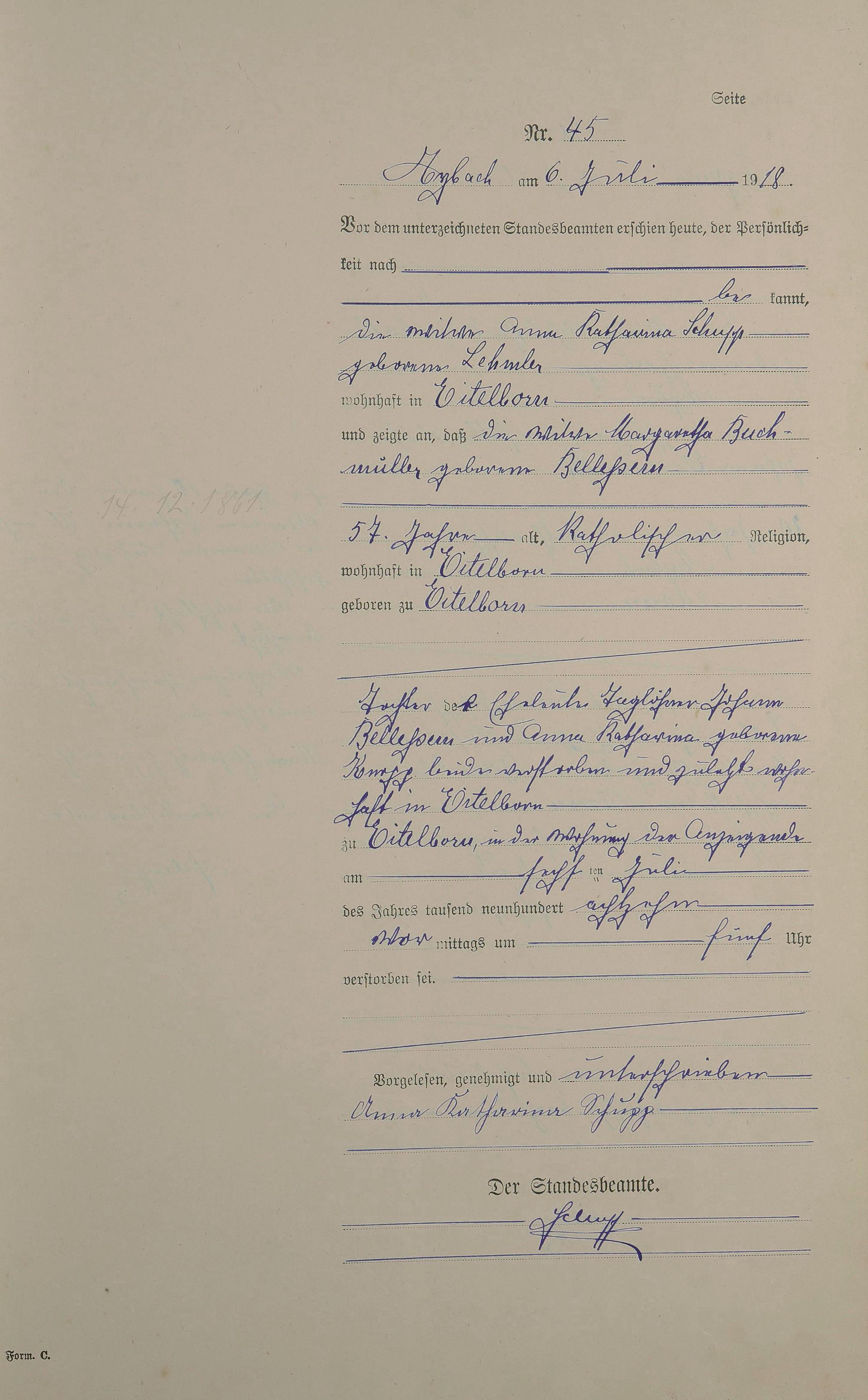 166/5: Sterberegister 1918