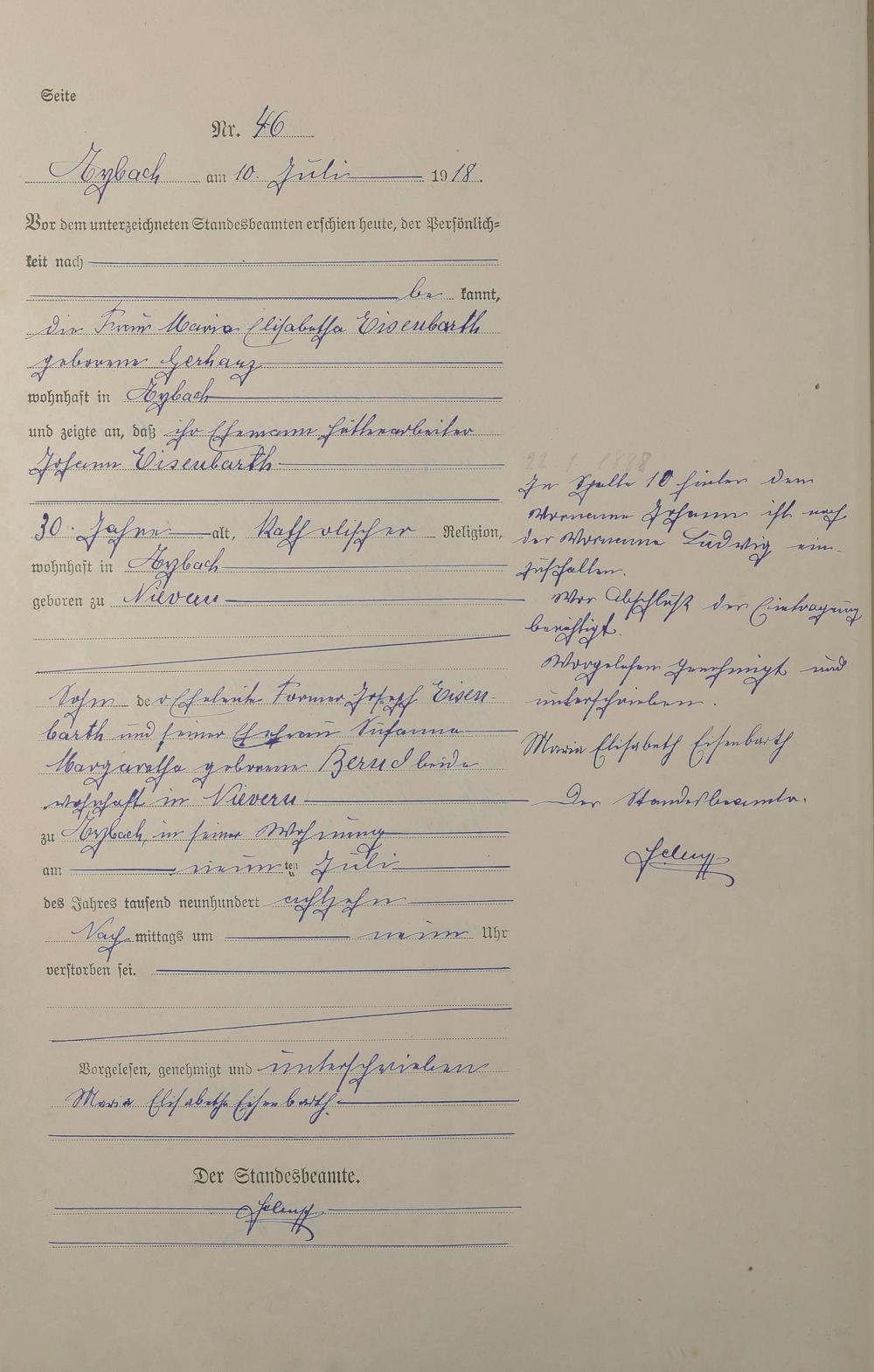 Sterberegister 1918