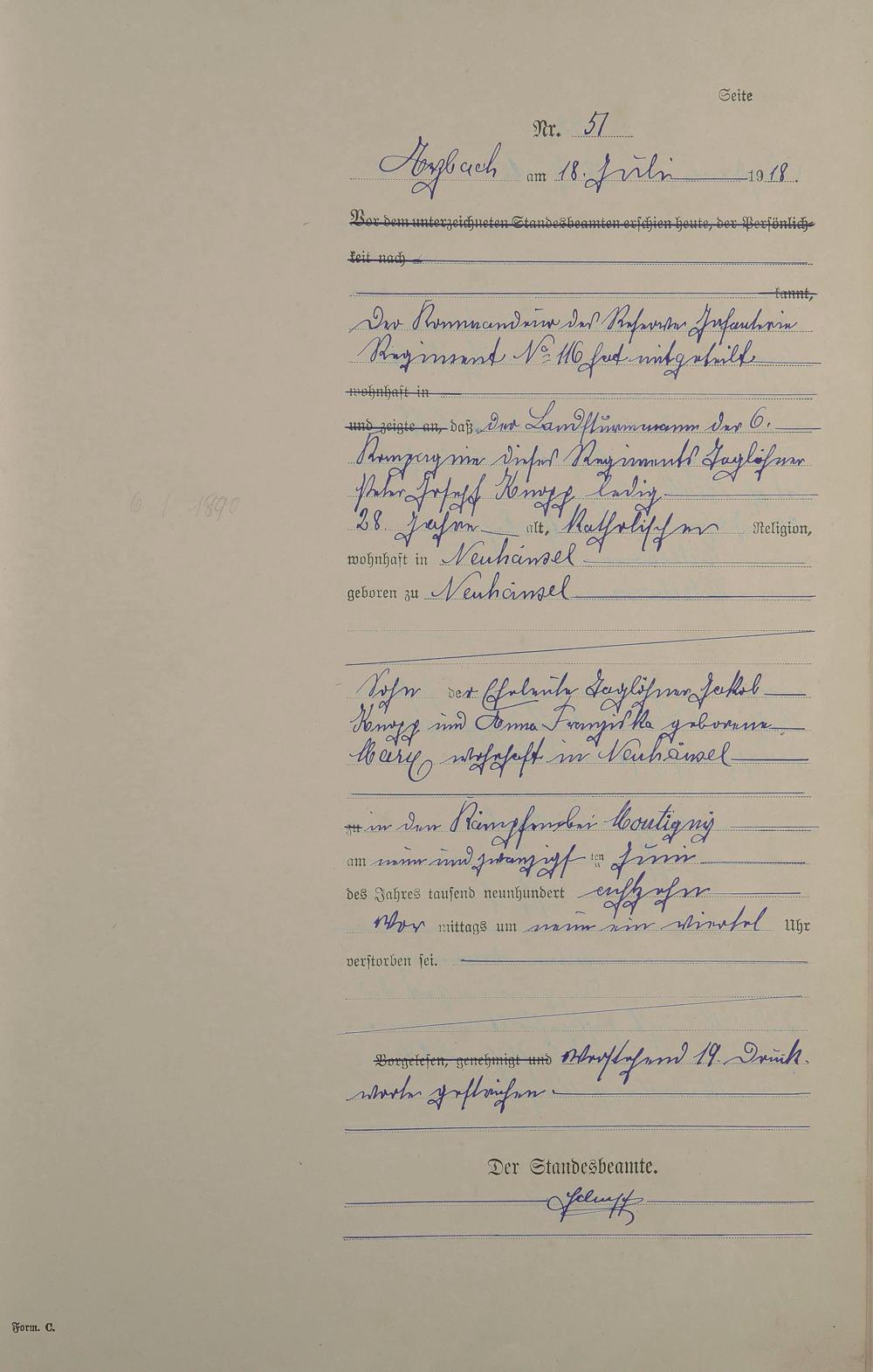 166/5: Sterberegister 1918