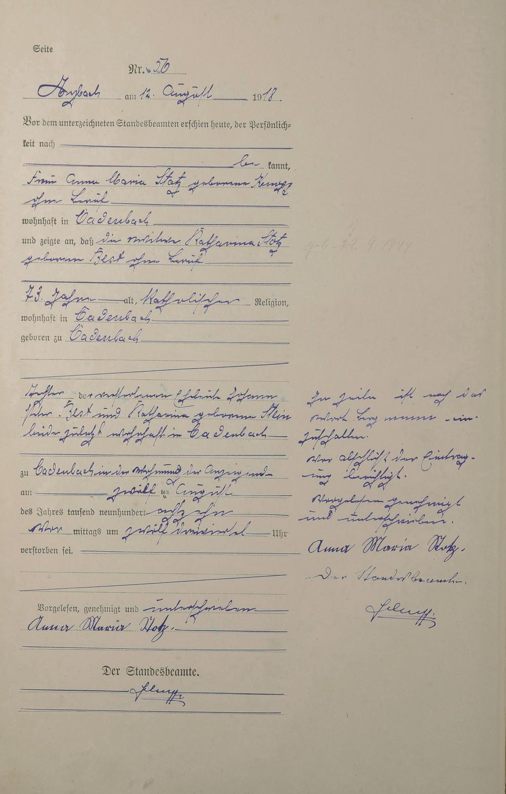 Sterberegister 1918