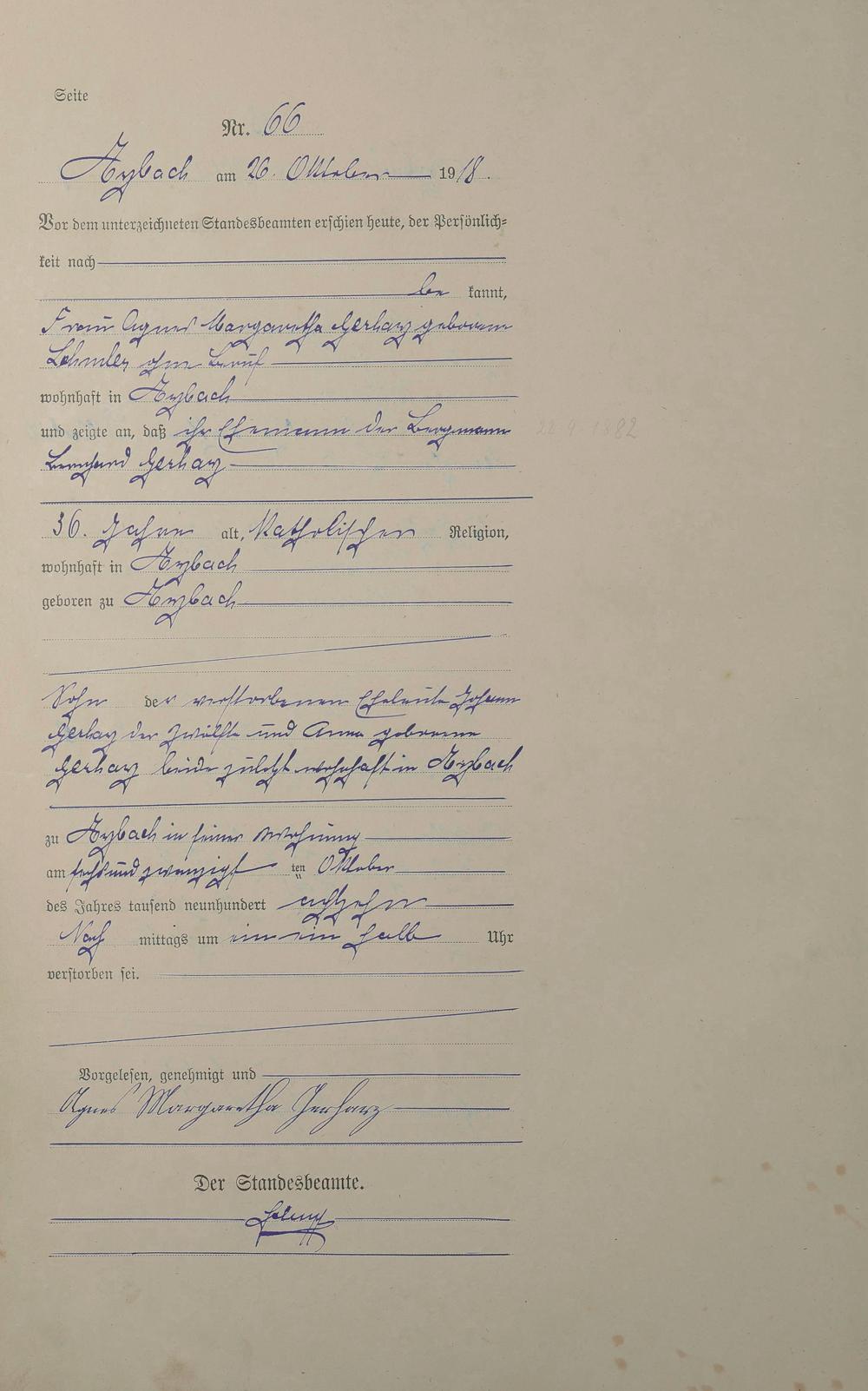 Sterberegister 1918