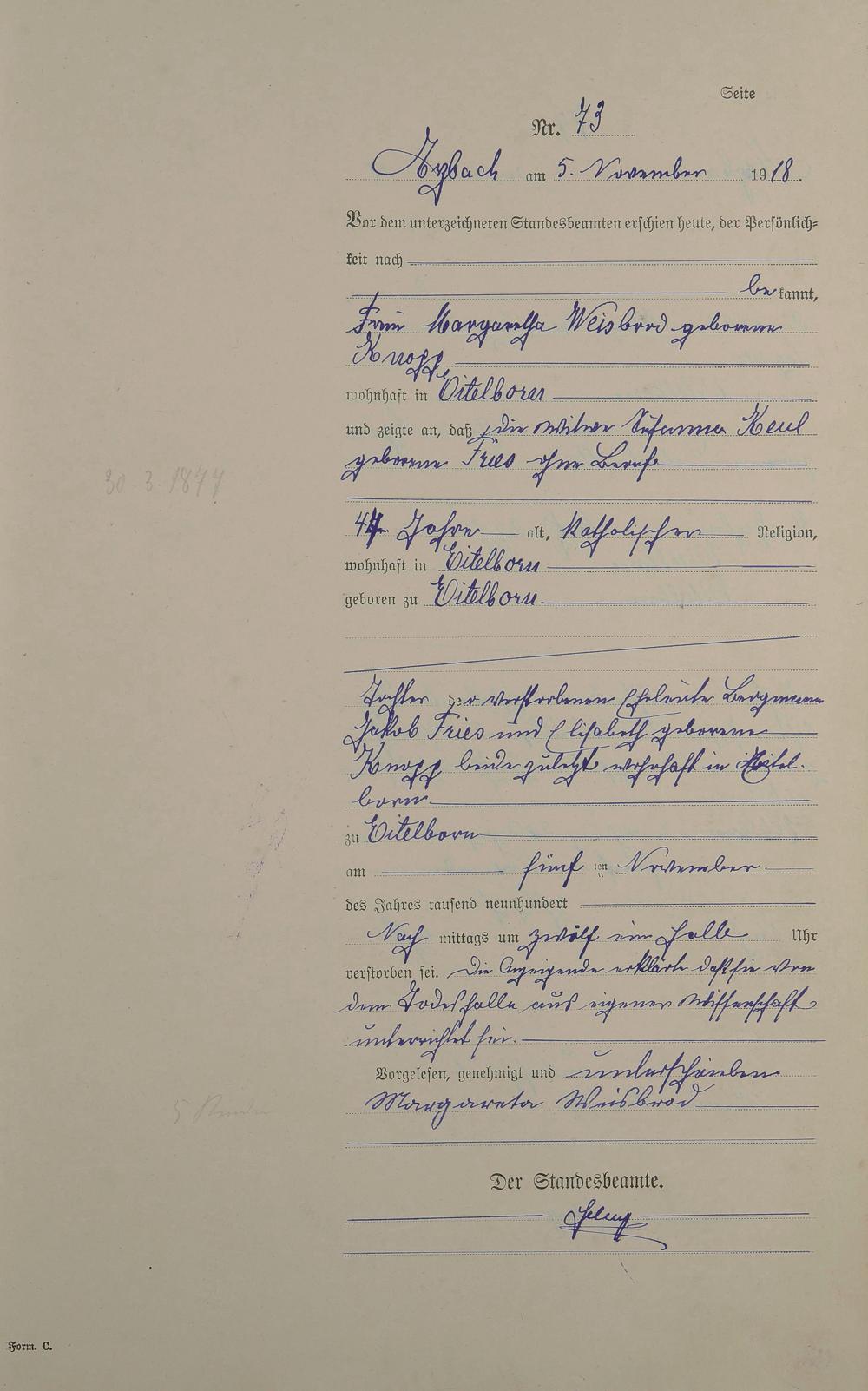 Sterberegister 1918