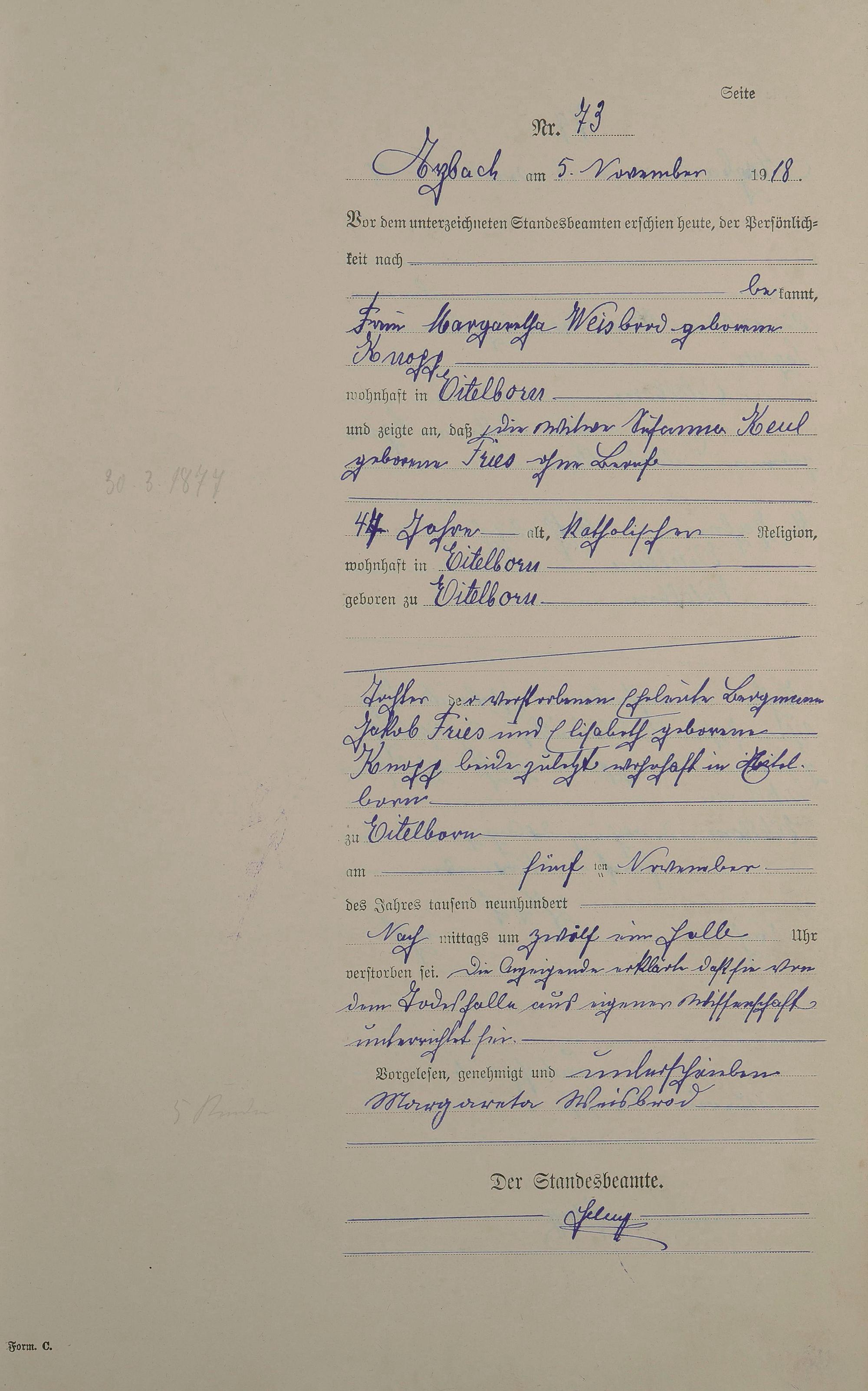 166/5: Sterberegister 1918
