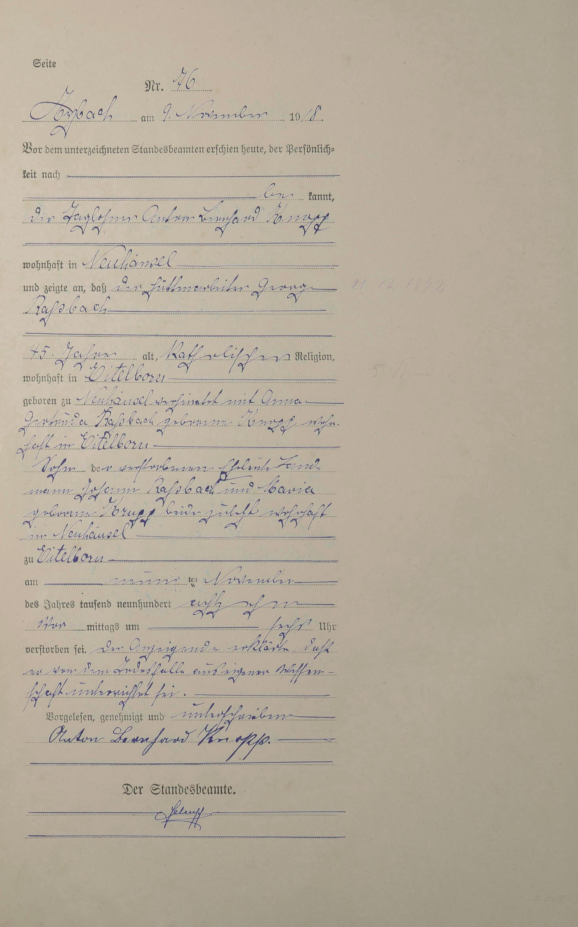 Sterberegister 1918