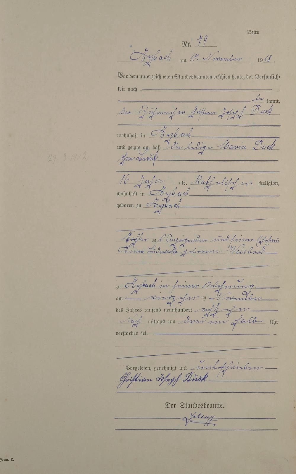 Sterberegister 1918