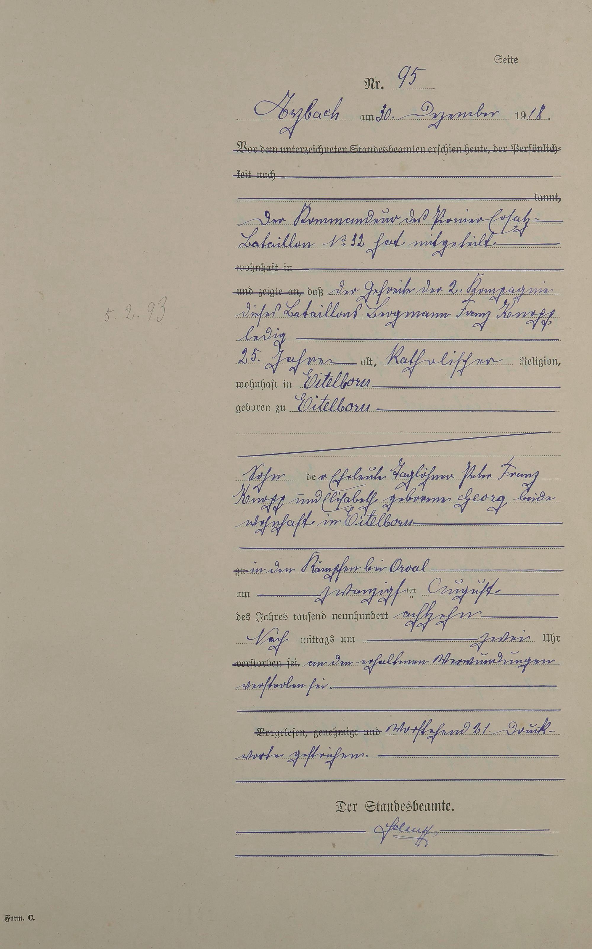 166/5: Sterberegister 1918