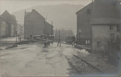 Bleichstraße bei Herbels-Mühle bei Hochwasser des Emsbaches