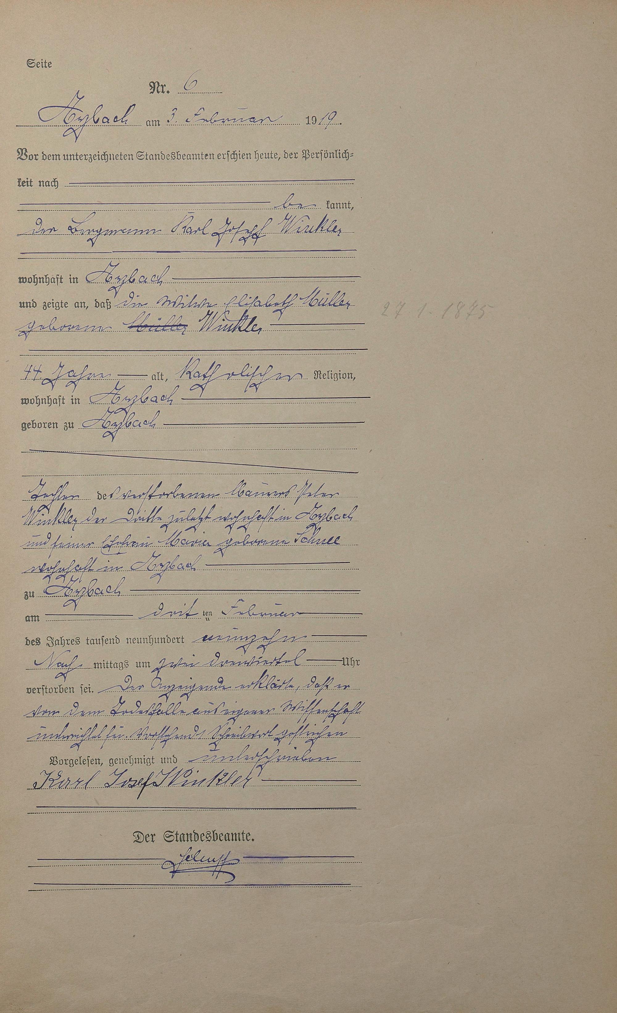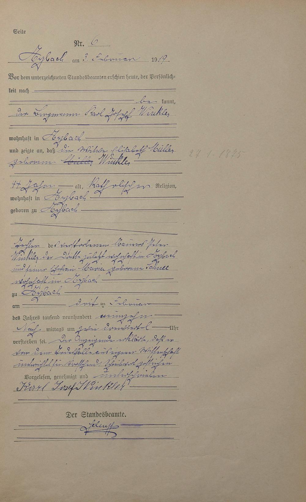 Sterberegister 1919