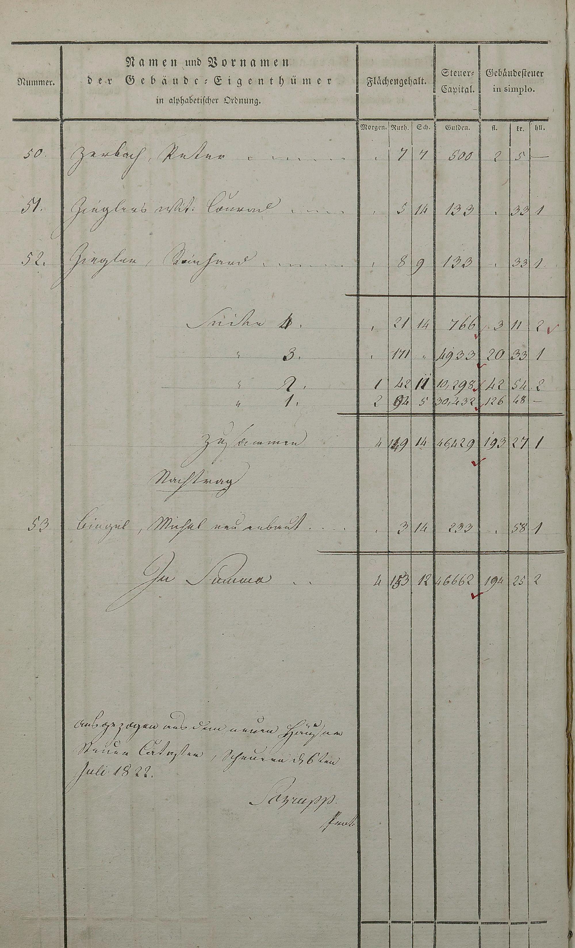 Gebäudesteuerkataster 1822 für Bad Ems - Gebäude 1 - 115