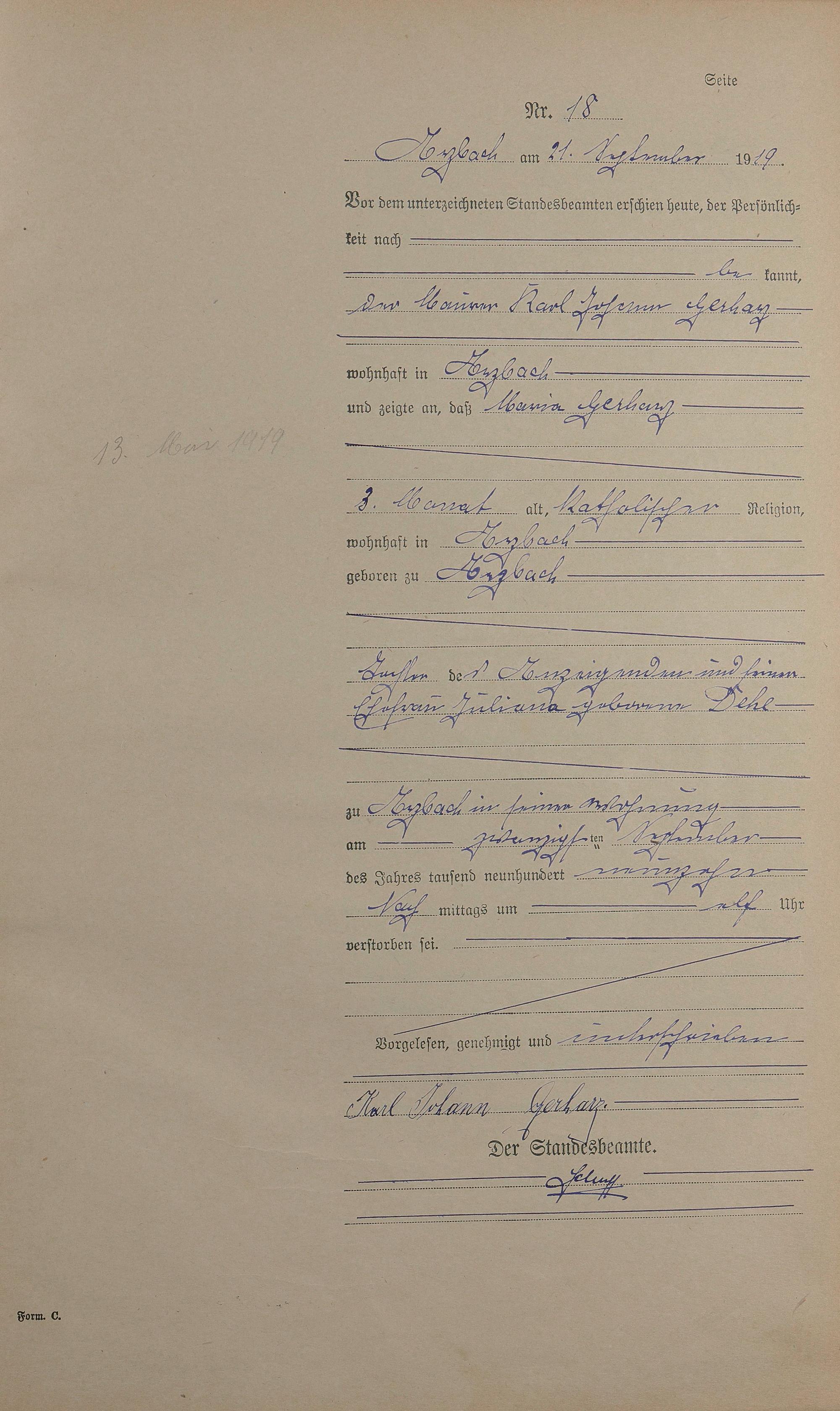 167/01: Sterberegister 1919