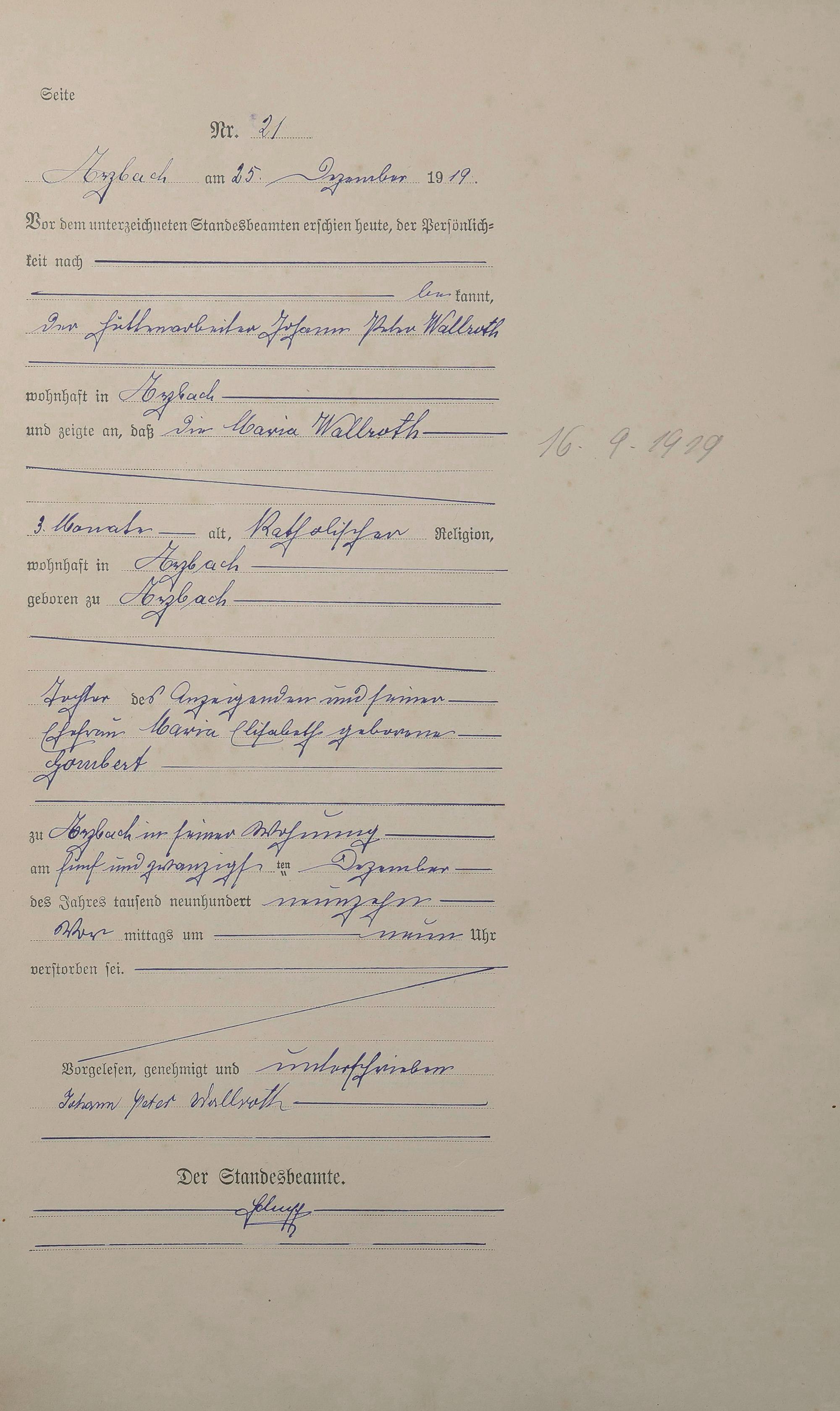 167/01: Sterberegister 1919
