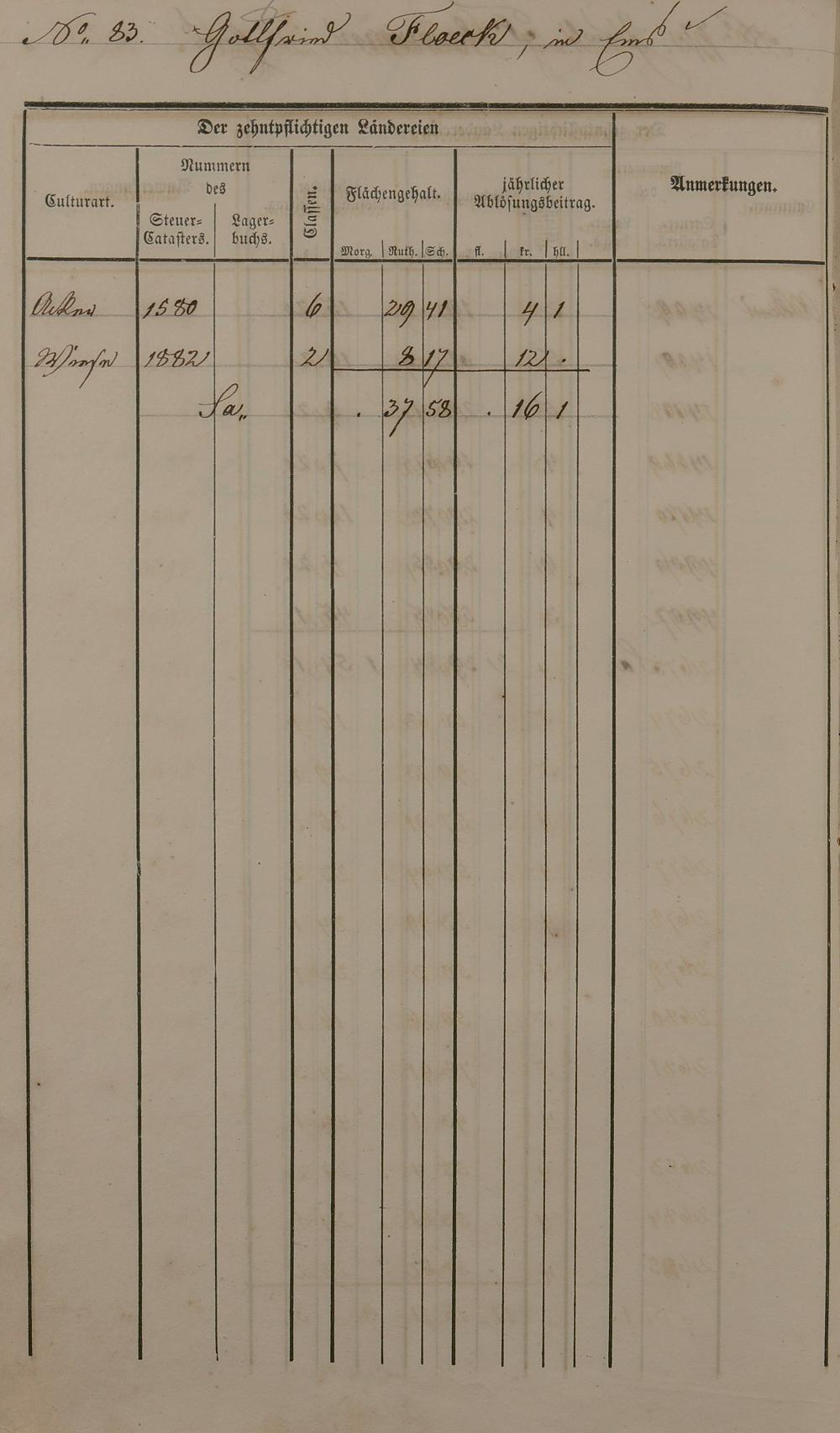 Ablösungskataster über den Dausenauer Pfarrzehnten