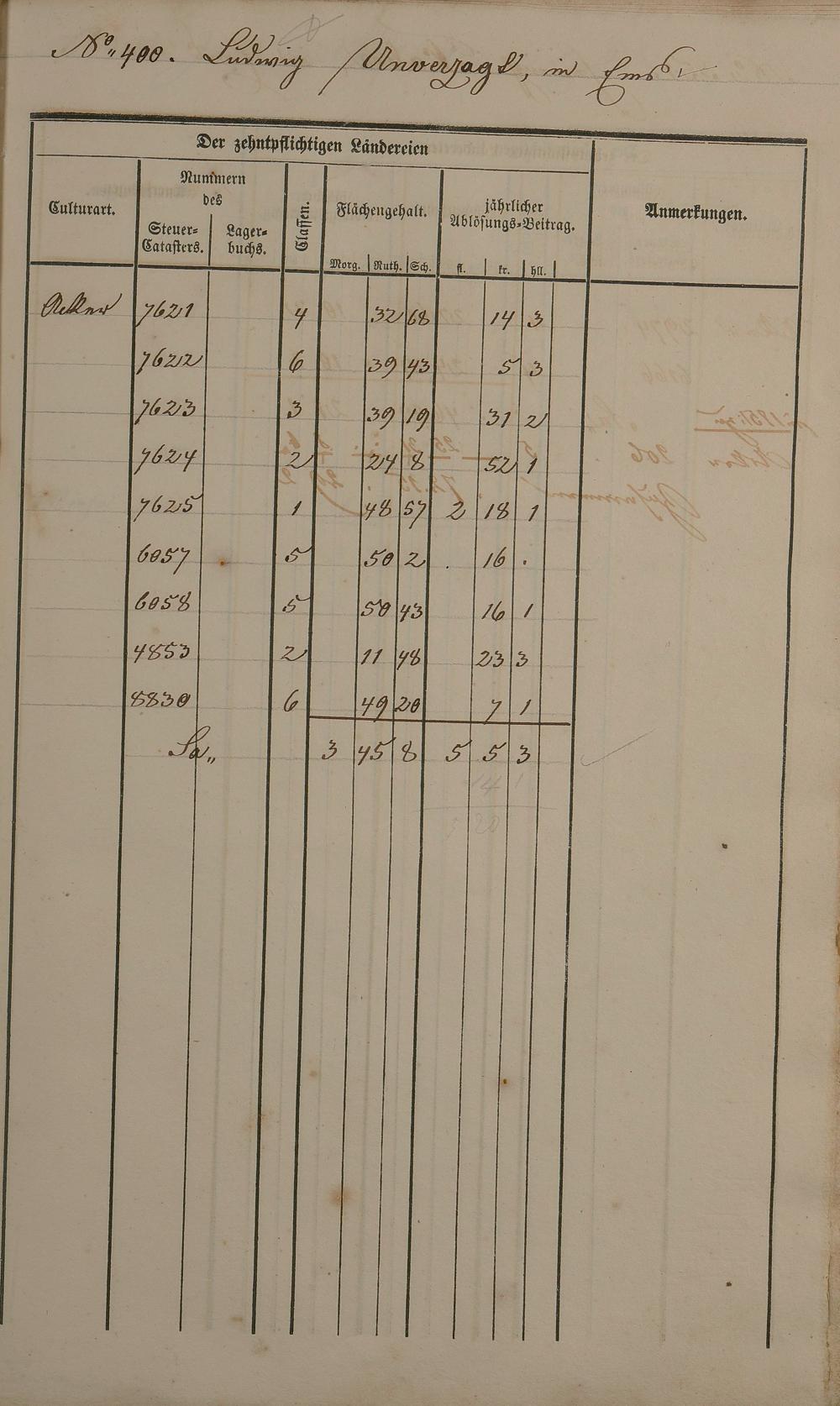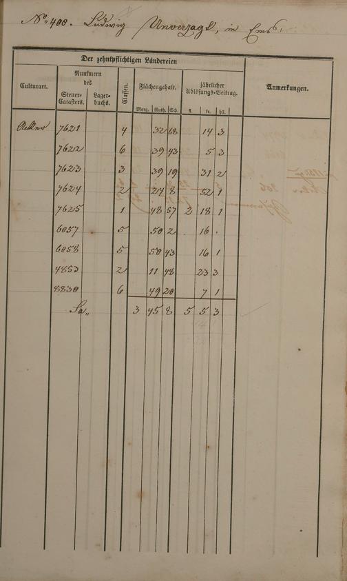 Ablösungskataster über den Dausenauer Pfarrzehnten