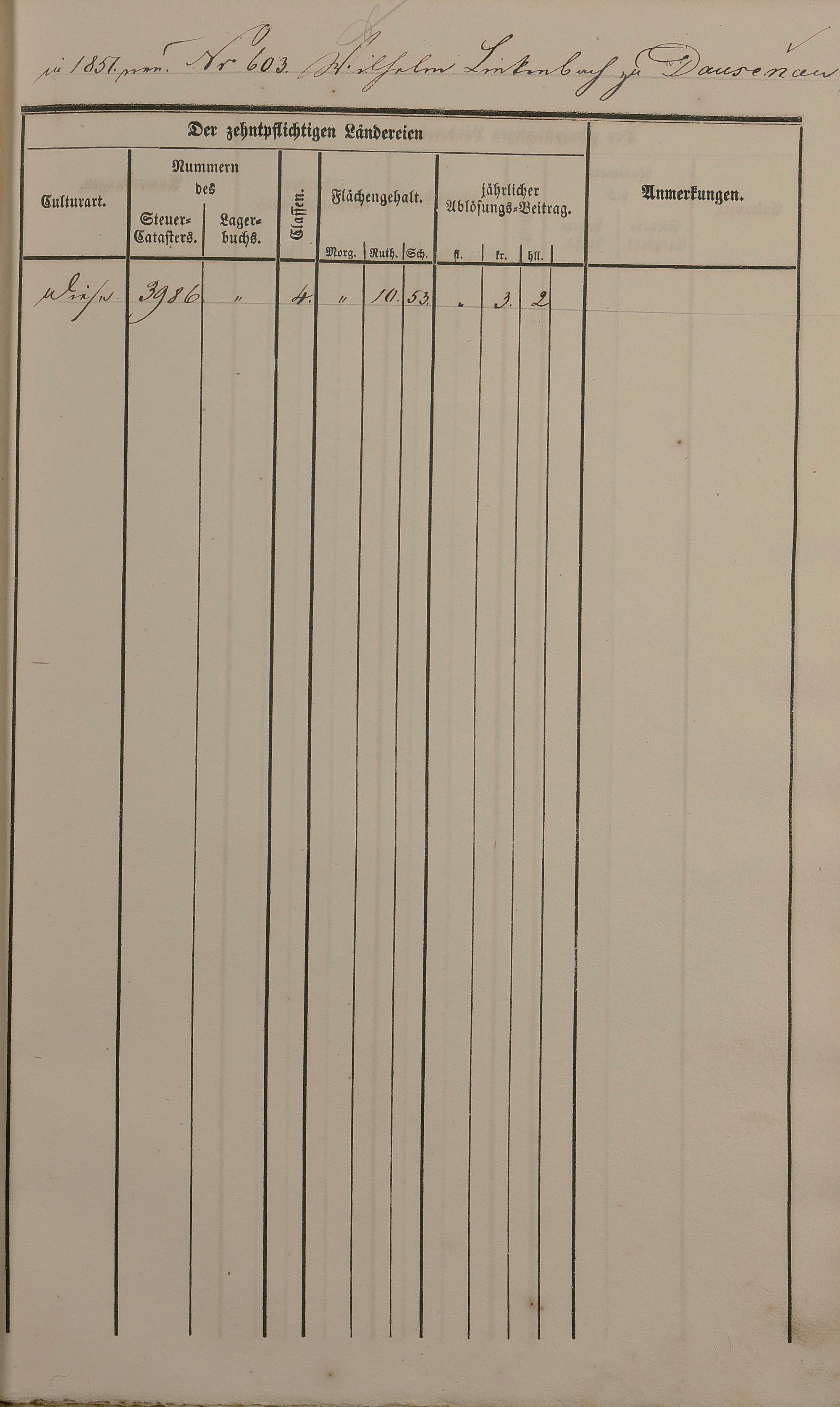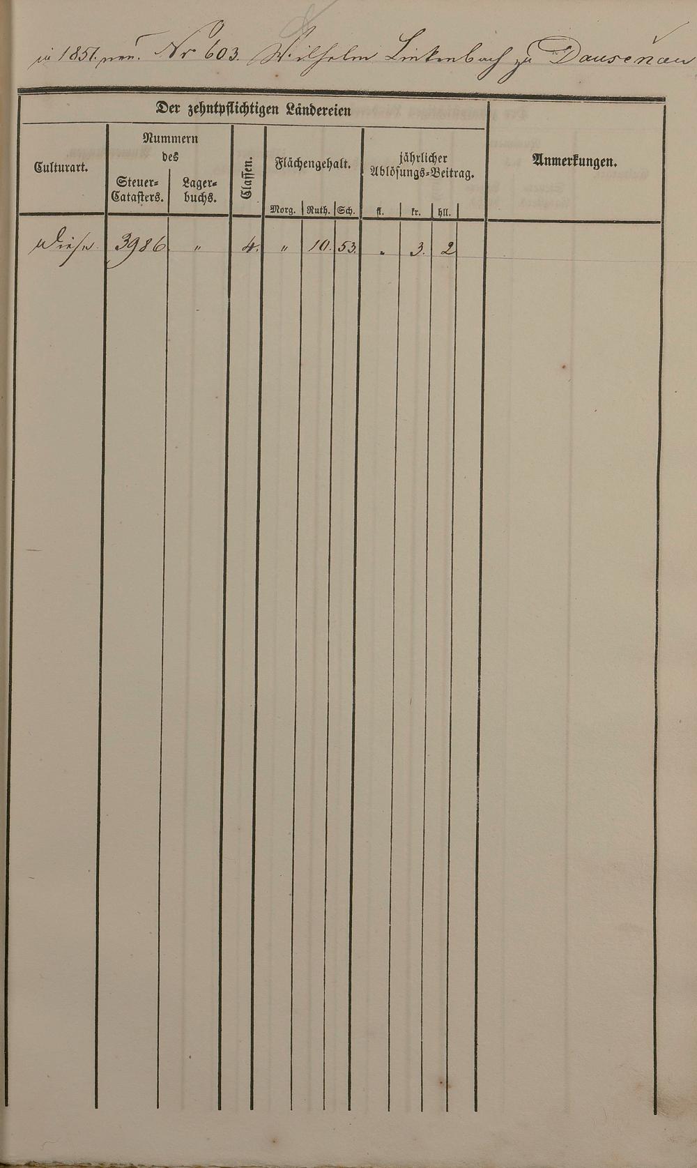 Ablösungskataster über den Dausenauer Pfarrzehnten